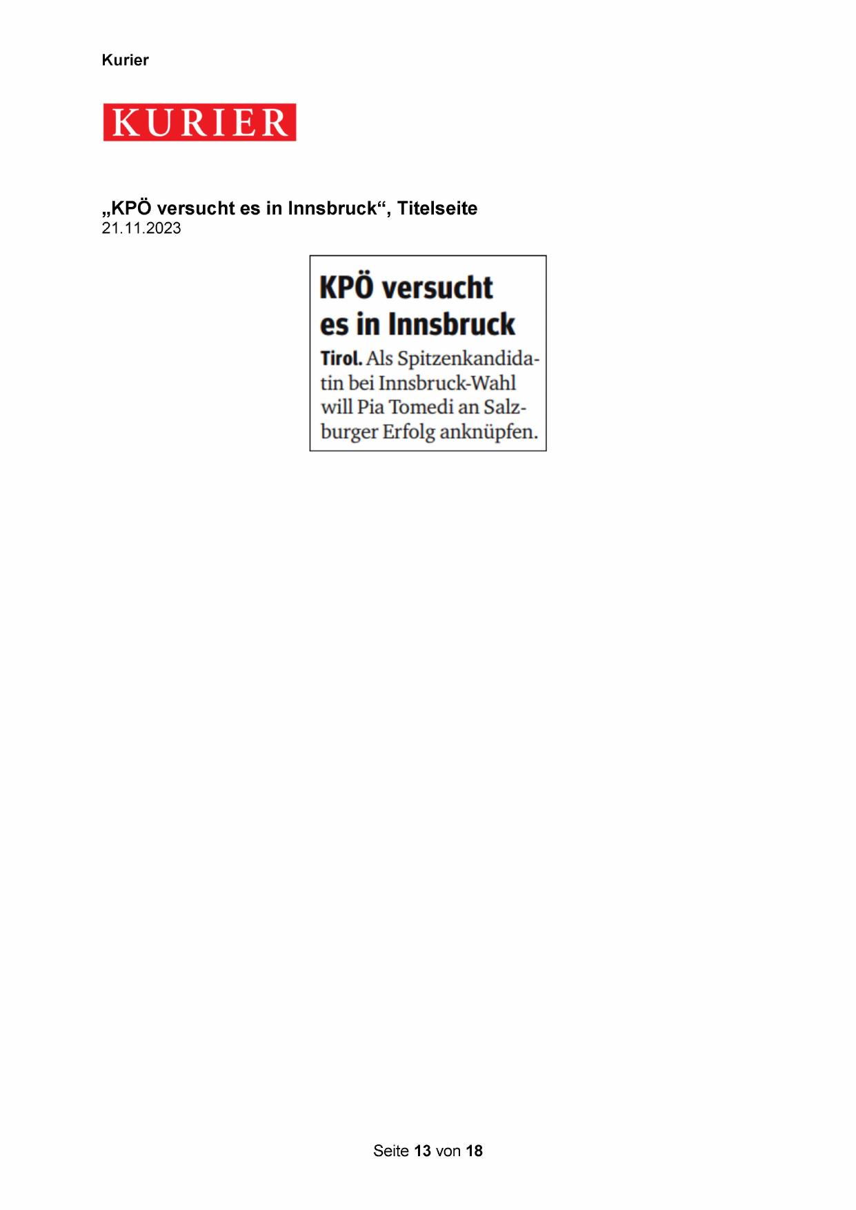 „KPÖ versucht es in Innsbruck“, Titelseite