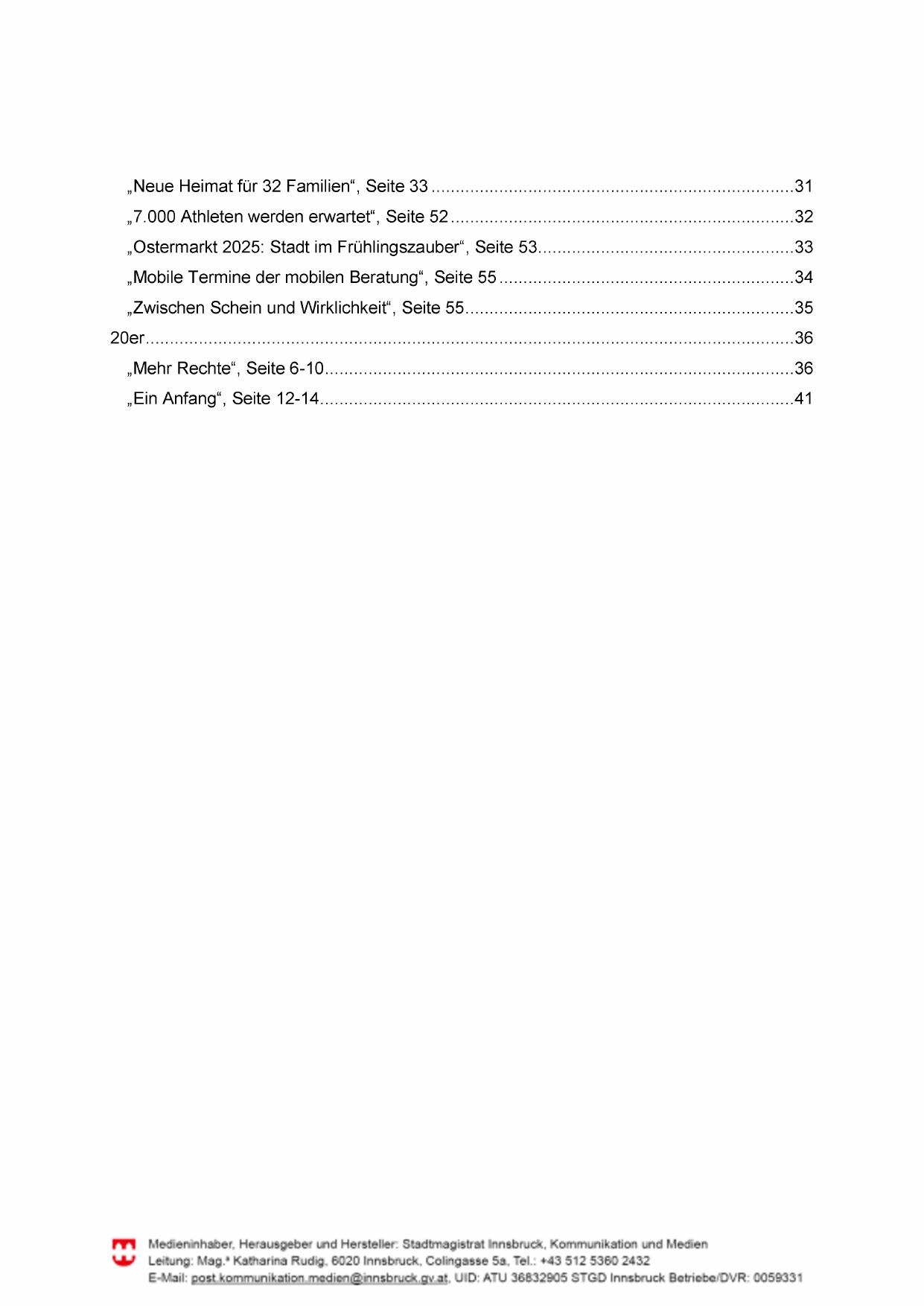 FPYY Medieninhaber, Herausgeber und Hersteller: Stadtmagistrat Innsbruck, Kommunikation und Medien