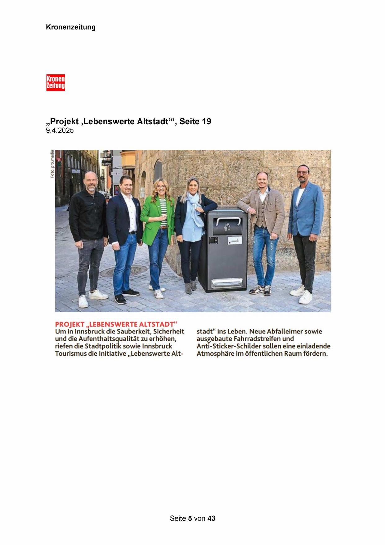 Um in Innsbruck die Sauberkeit, Sicherheit _ stadt“ ins Leben. Neue Abfalleimer sowie