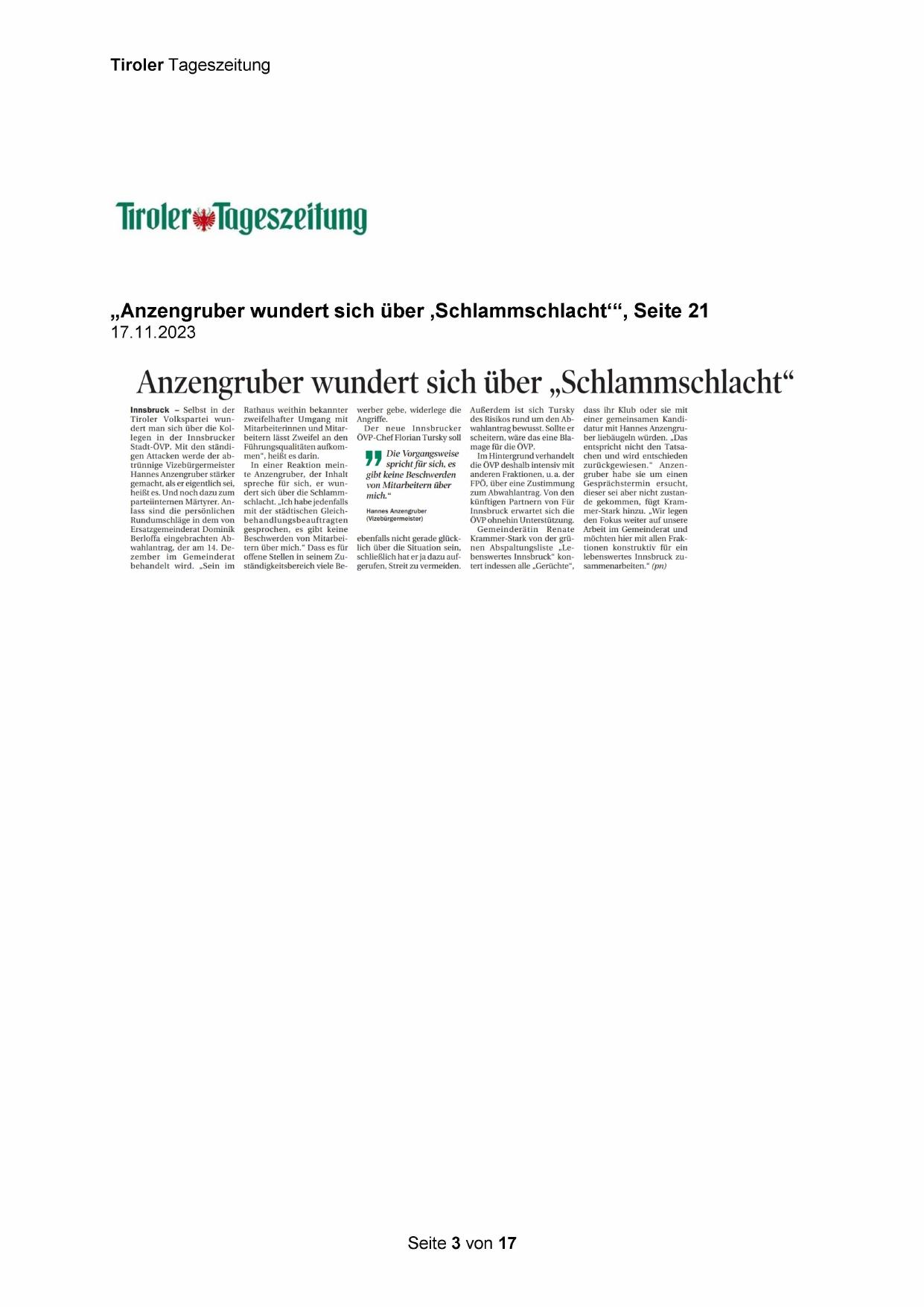 „Anzengruber wundert sich über ‚Schlammschlacht“‘“, Seite 21