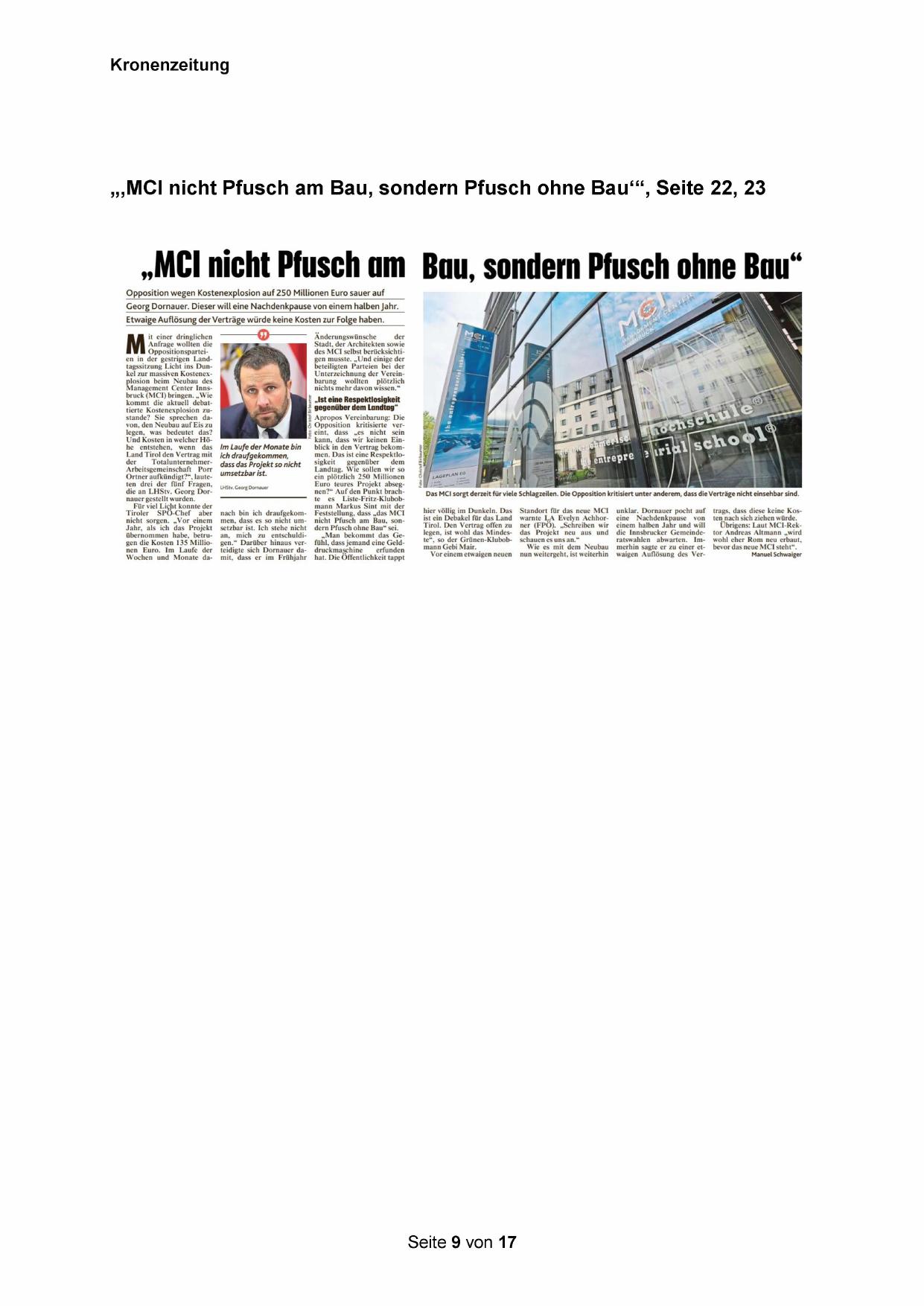 „‚MCI nicht Pfusch am Bau, sondern Pfusch ohne Bau‘“, Seite 22, 23