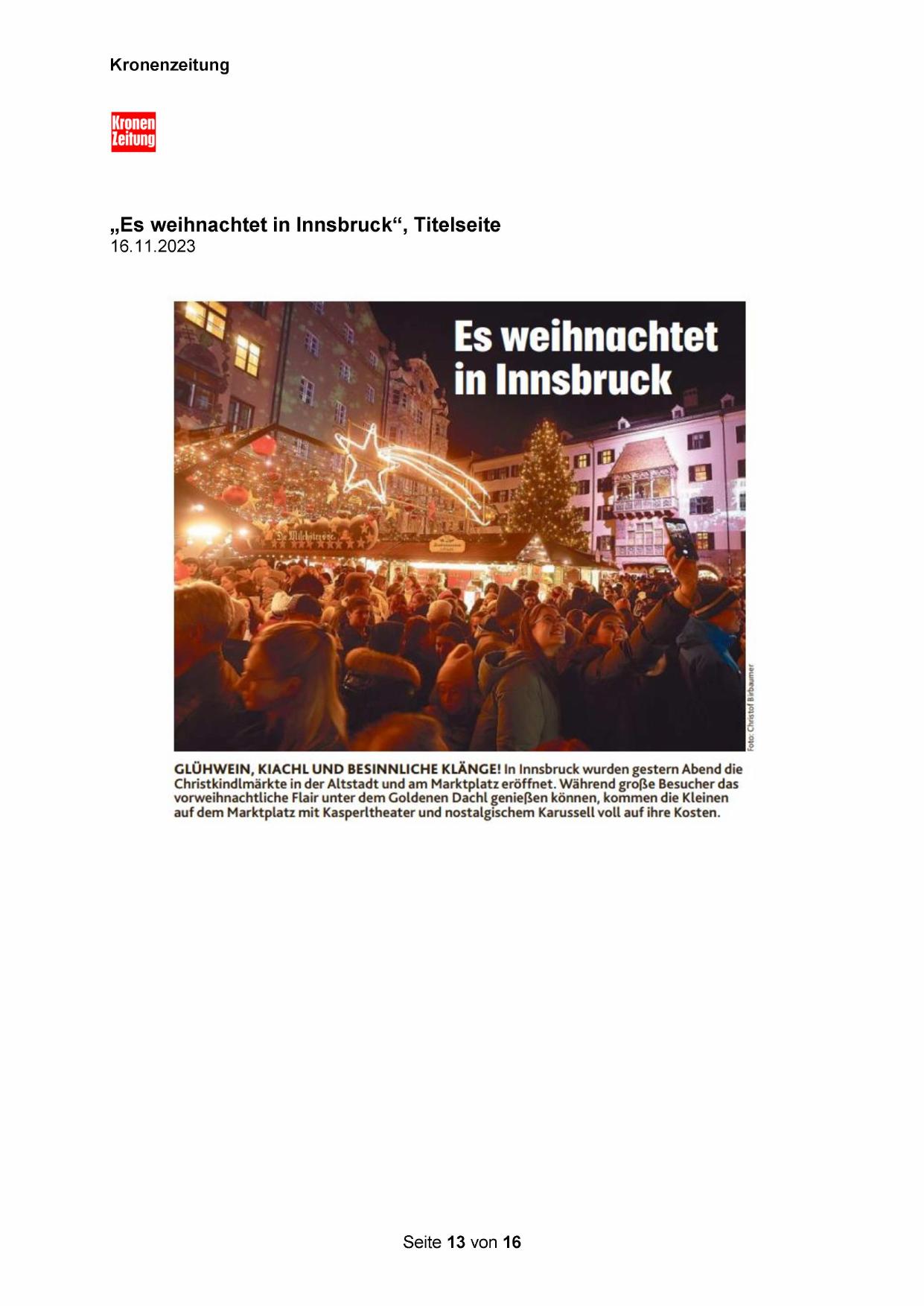 GLÜHWEIN, KIACHL UND BESINNLICHE KLÄNGE! In Innsbruck wurden gestern Abend die