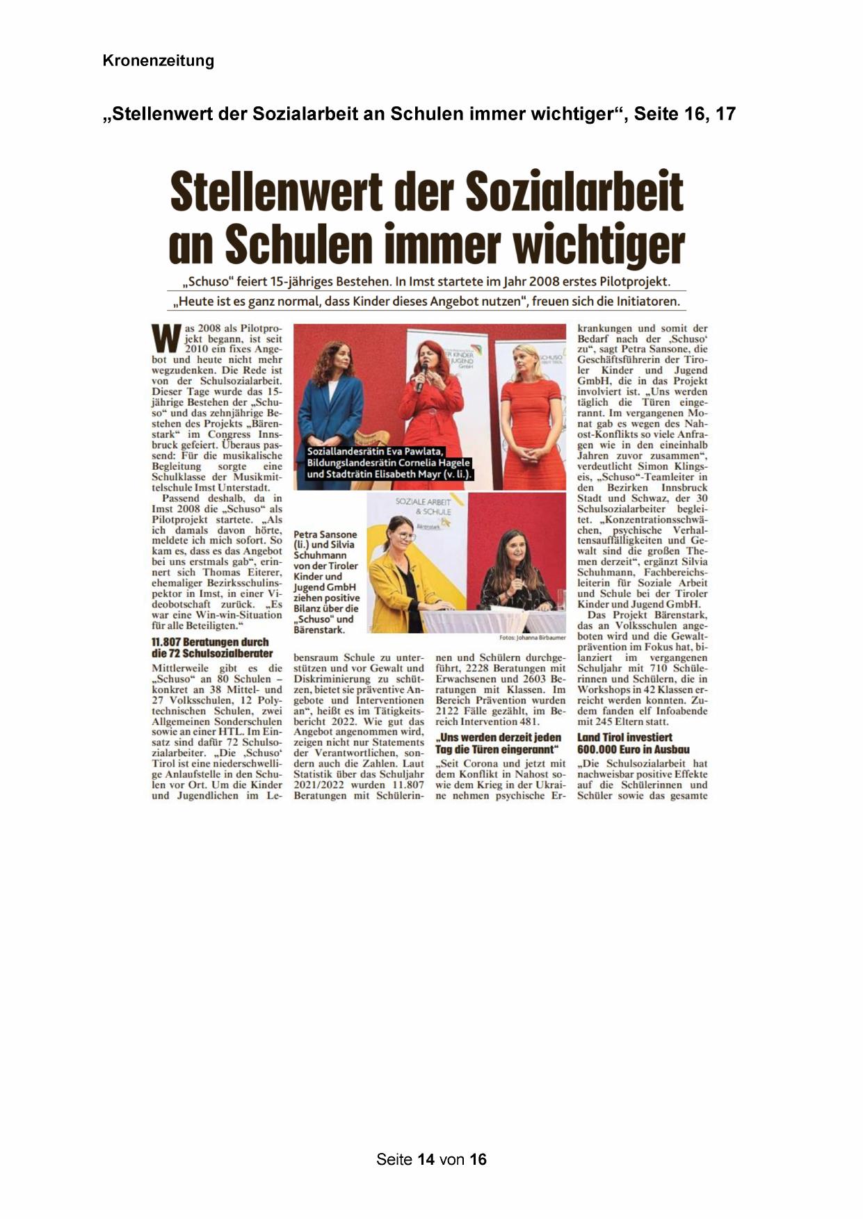 „Stellenwert der Sozialarbeit an Schulen immer wichtiger“, Seite 16, 17