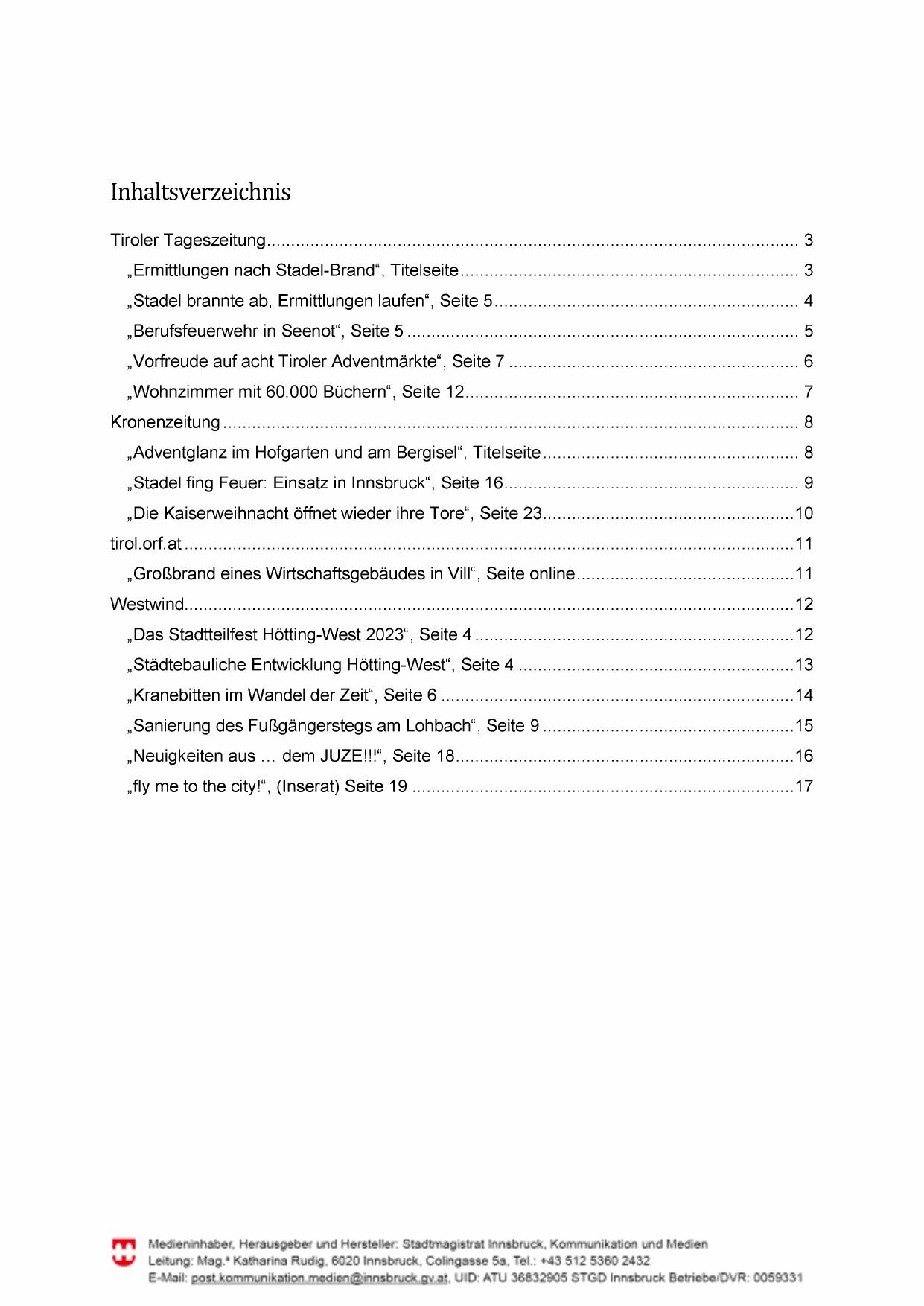 Medieninhaber, Herausgeber und Hersteller: Stadtmagistrat Innsbruck, Kommunikation und Medien