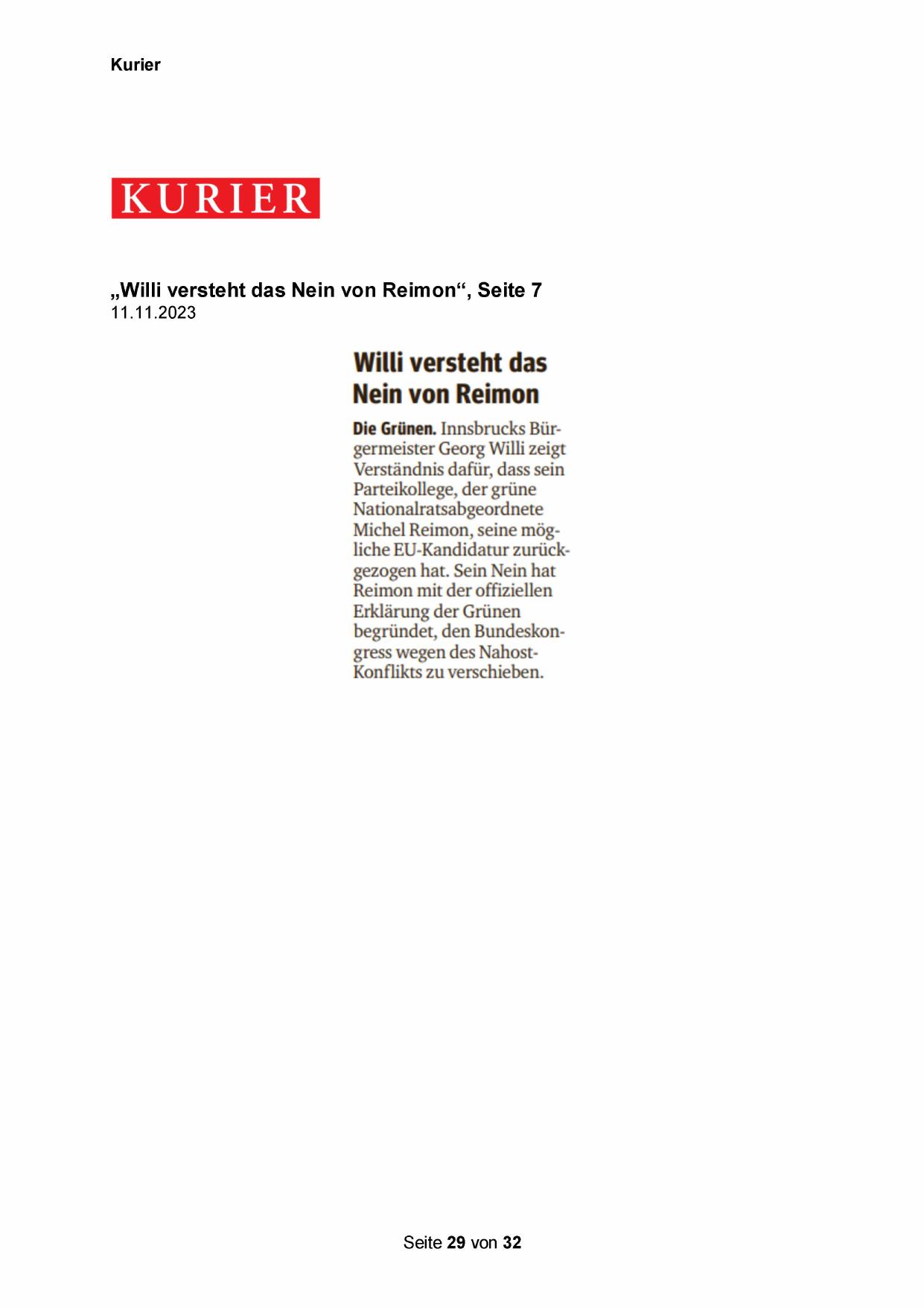 Michel Reimon, seine mögliche EU-Kandidatur zurückgezogen hat. Sein Nein hat