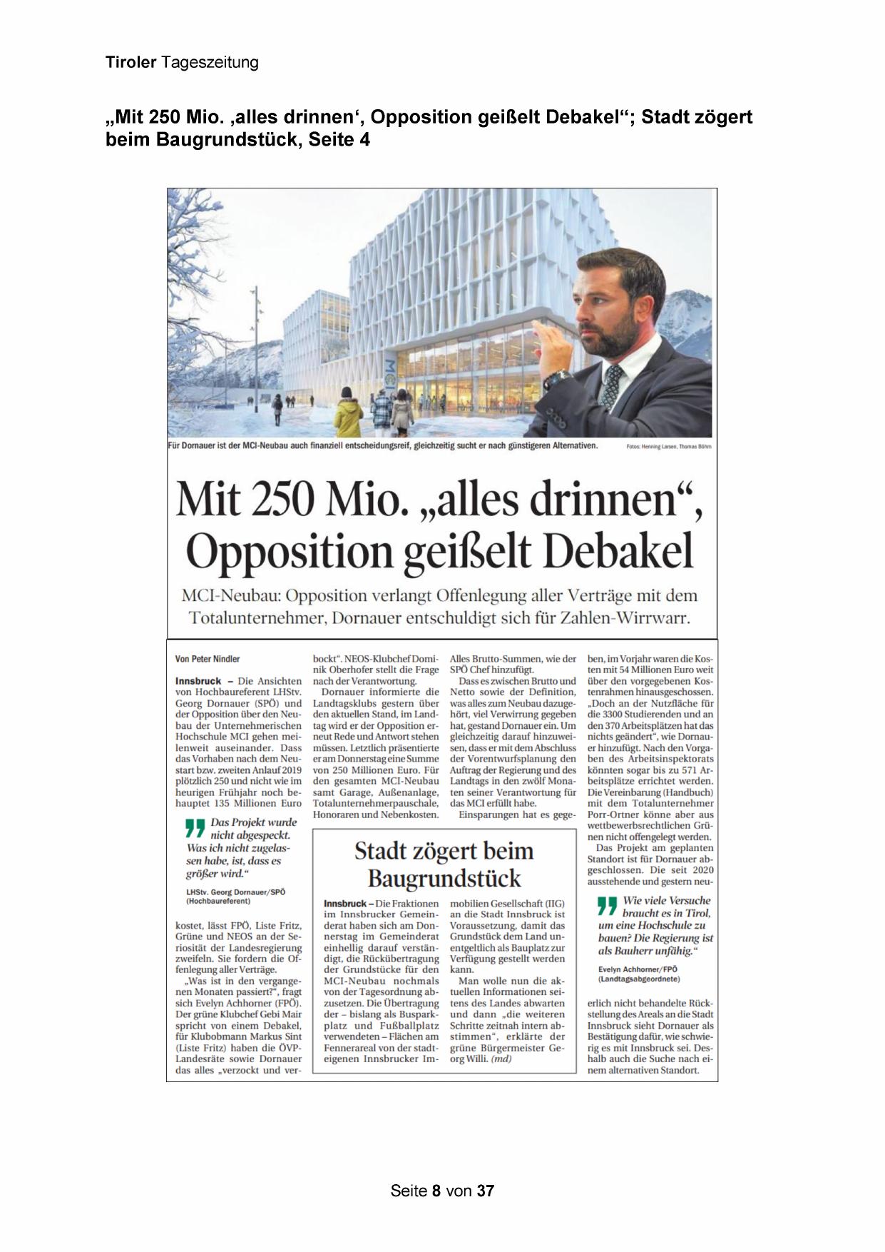 Bestätigung dafür, wie schwierig es mit Innsbruck sei. Deshalb auch die Suche nach einem alternativen Standort.