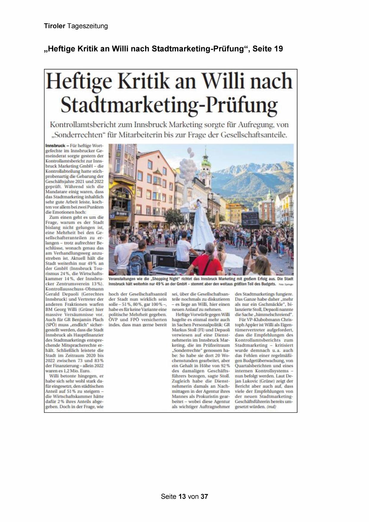 „Heftige Kritik an Willi nach Stadtmarketing-Prüfung“, Seite 19