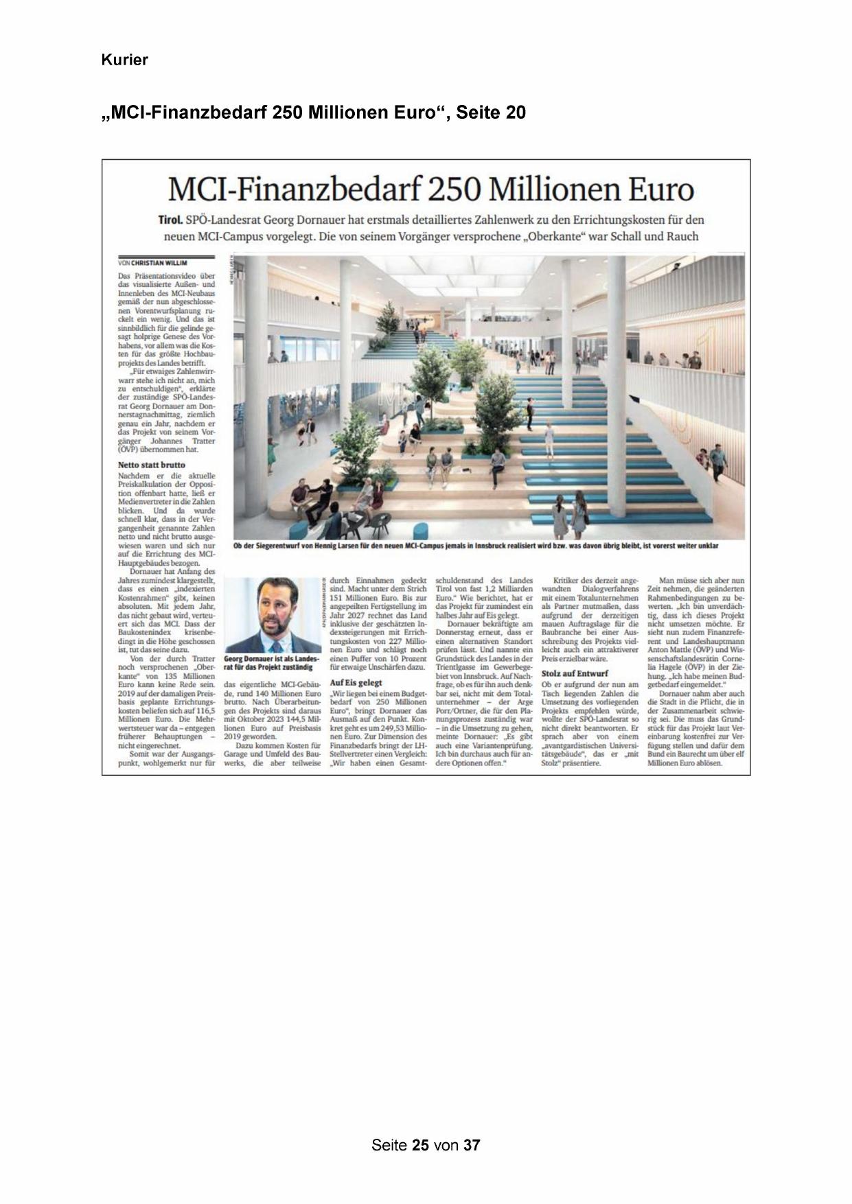 neuen MCI-Campus vorgelegt. Die von seinem Vorgänger versprochene „Oberkante“ war Schall und Rauch