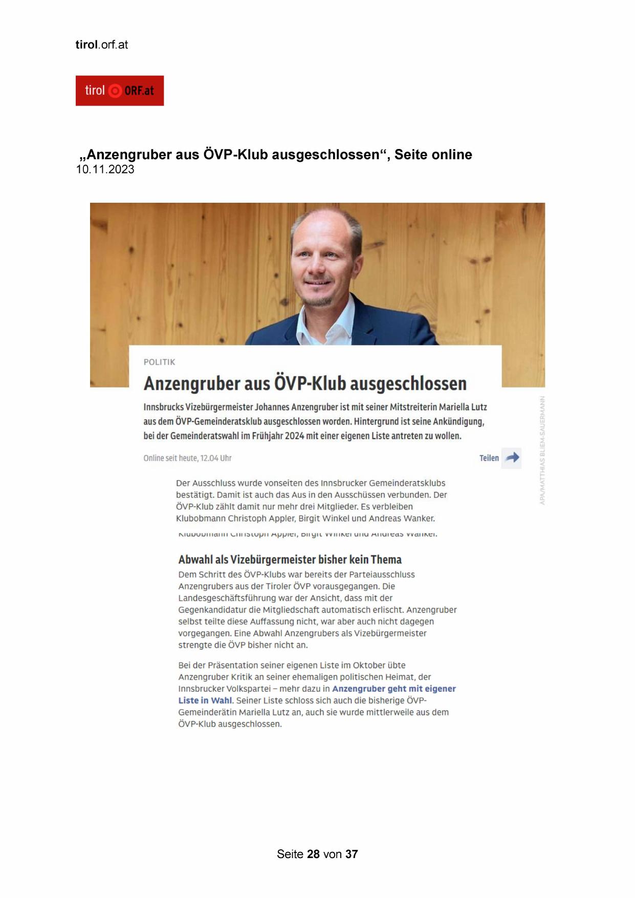 Innsbrucker Volkspartei - mehr dazu in Anzengruber geht mit eigener