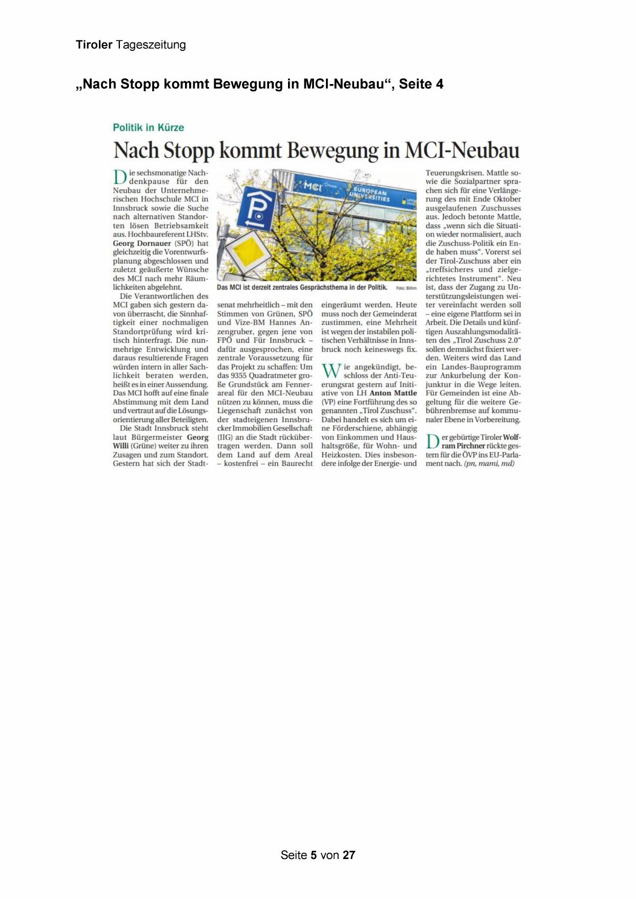 „Nach Stopp kommt Bewegung in MCI-Neubau“, Seite 4