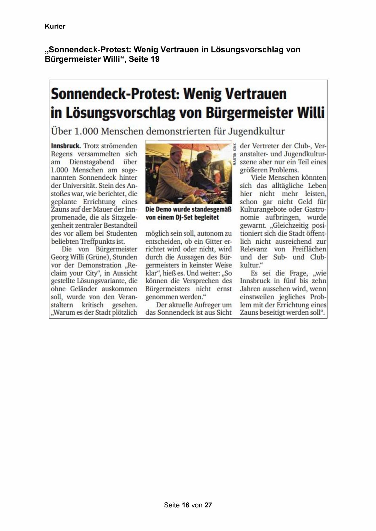 „Sonnendeck-Protest: Wenig Vertrauen in Lösungsvorschlag von