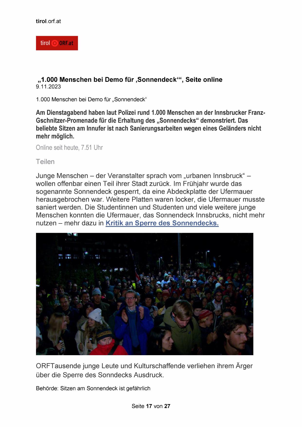 Gschnitzer-Promenade für die Erhaltung des „Sonnendecks“ demonstriert. Das