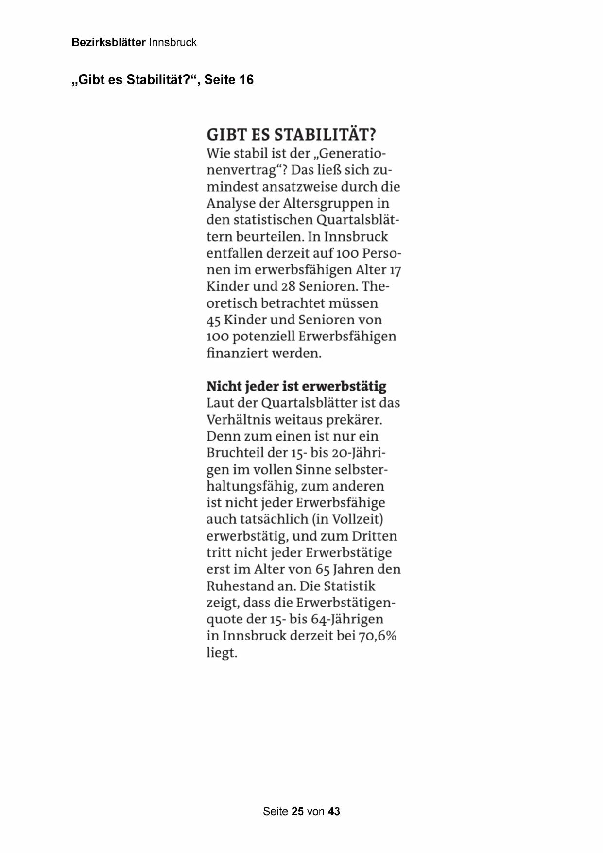 den statistischen Quartalsblättern beurteilen. In Innsbruck