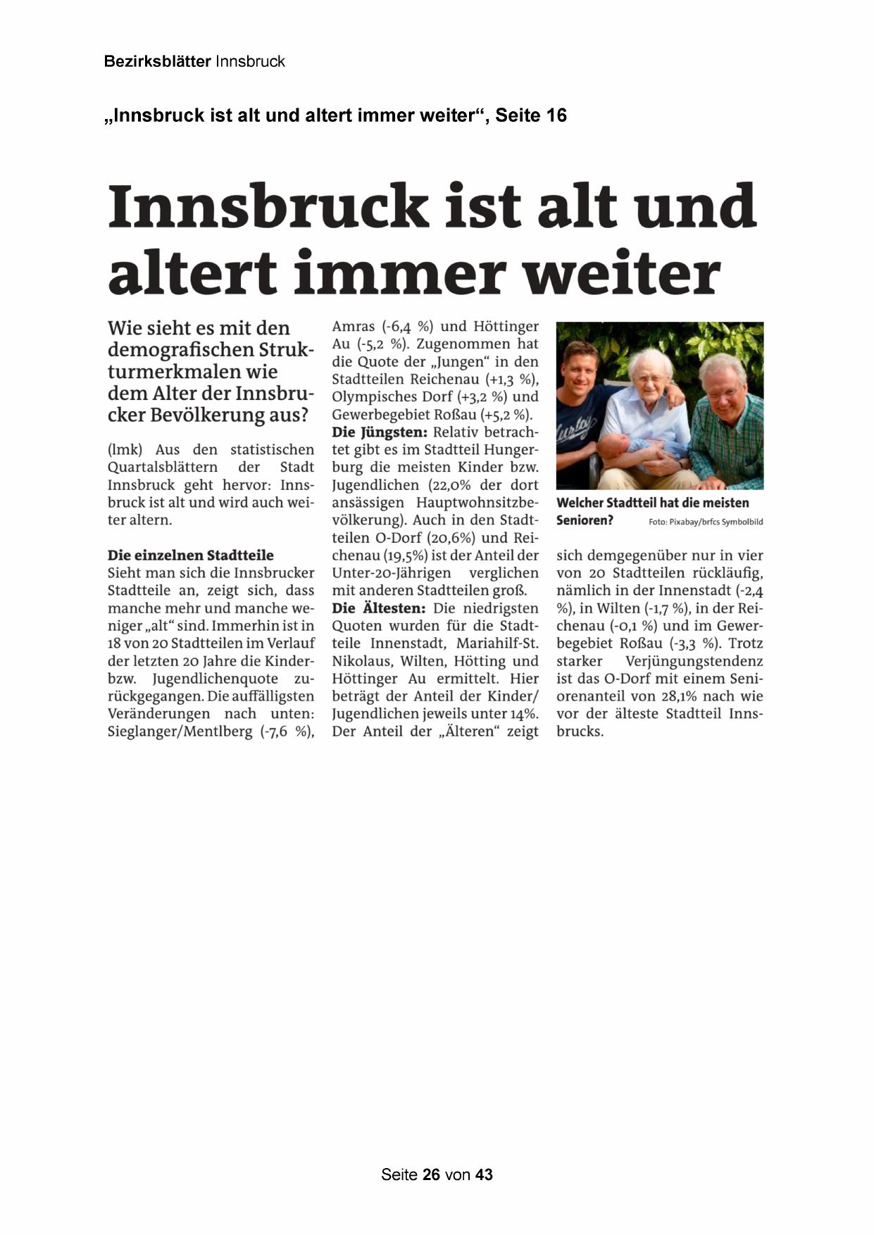 Innsbruck geht hervor: Innsbruck ist alt und wird auch weiter altern.
