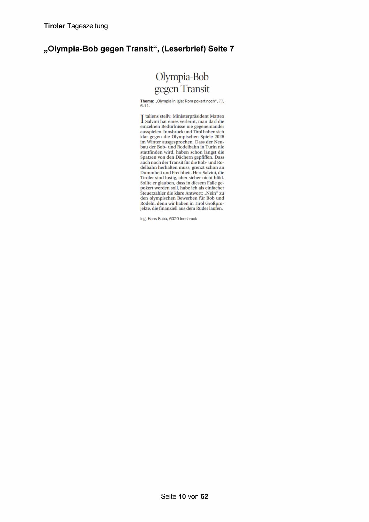 „Olympia-Bob gegen Transit“, (Leserbrief) Seite 7