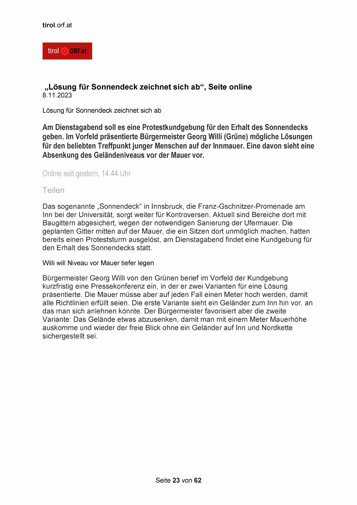geben. Im Vorfeld präsentierte Bürgermeister Georg Willi (Grüne) mögliche Lösungen