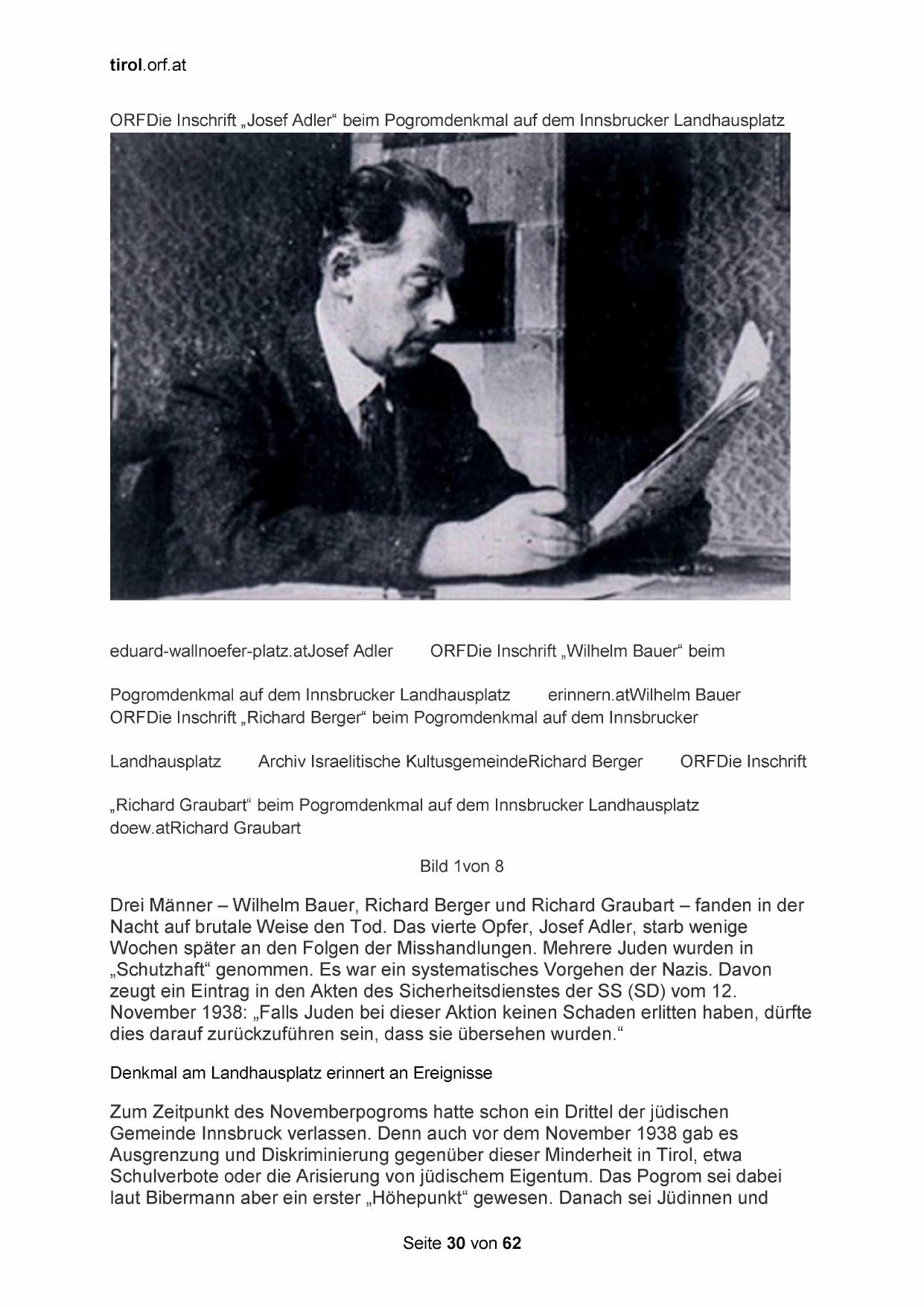 ORFDie Inschrift „Josef Adler“ beim Pogromdenkmal auf dem Innsbrucker Landhausplatz