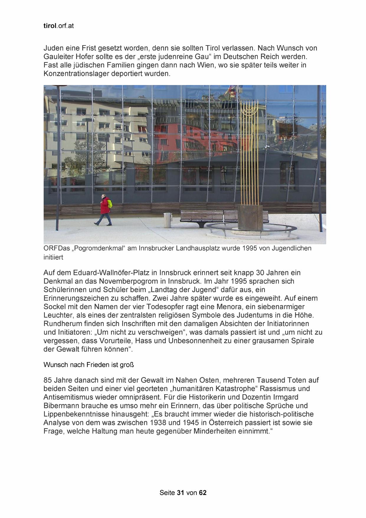 ORFDas „Pogromdenkmal” am Innsbrucker Landhausplatz wurde 1995 von Jugendlichen