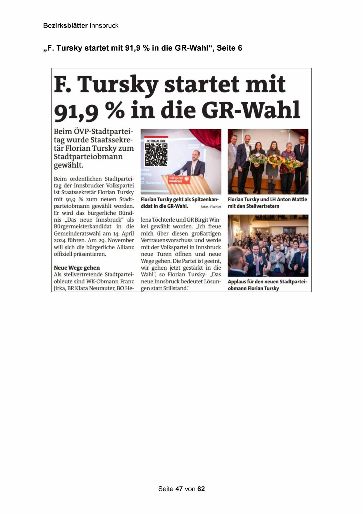 „F. Tursky startet mit 91,9 % in die GR-Wahl“, Seite 6
