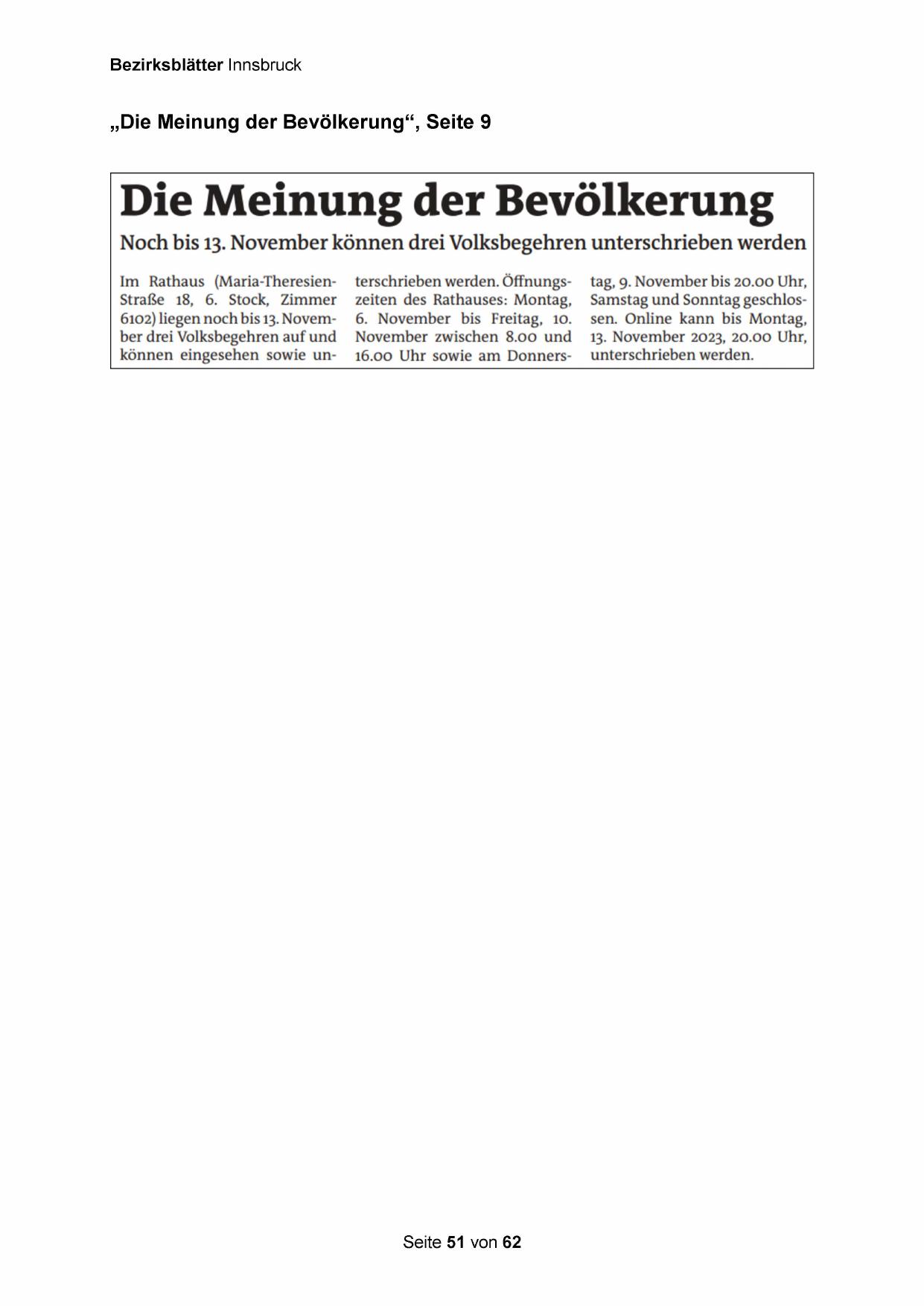6102) liegen noch bis 13. November drei Volksbegehren auf und