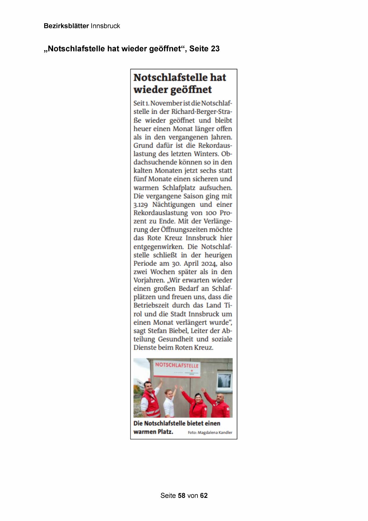 „Notschlafstelle hat wieder geöffnet‘“, Seite 23