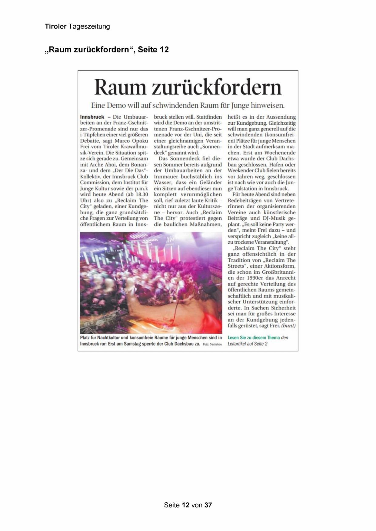 nicht nur aus der Kulturszene — hervor. Auch „Reclaim