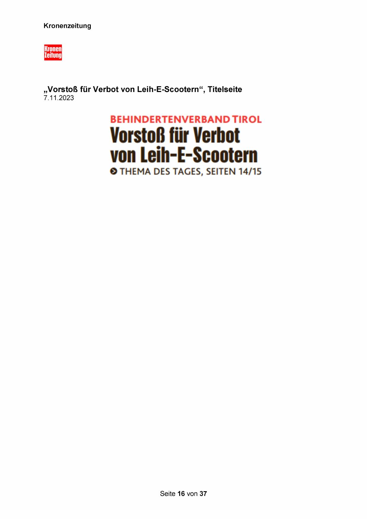 „Vorstoß für Verbot von Leih-E-Scootern“, Titelseite