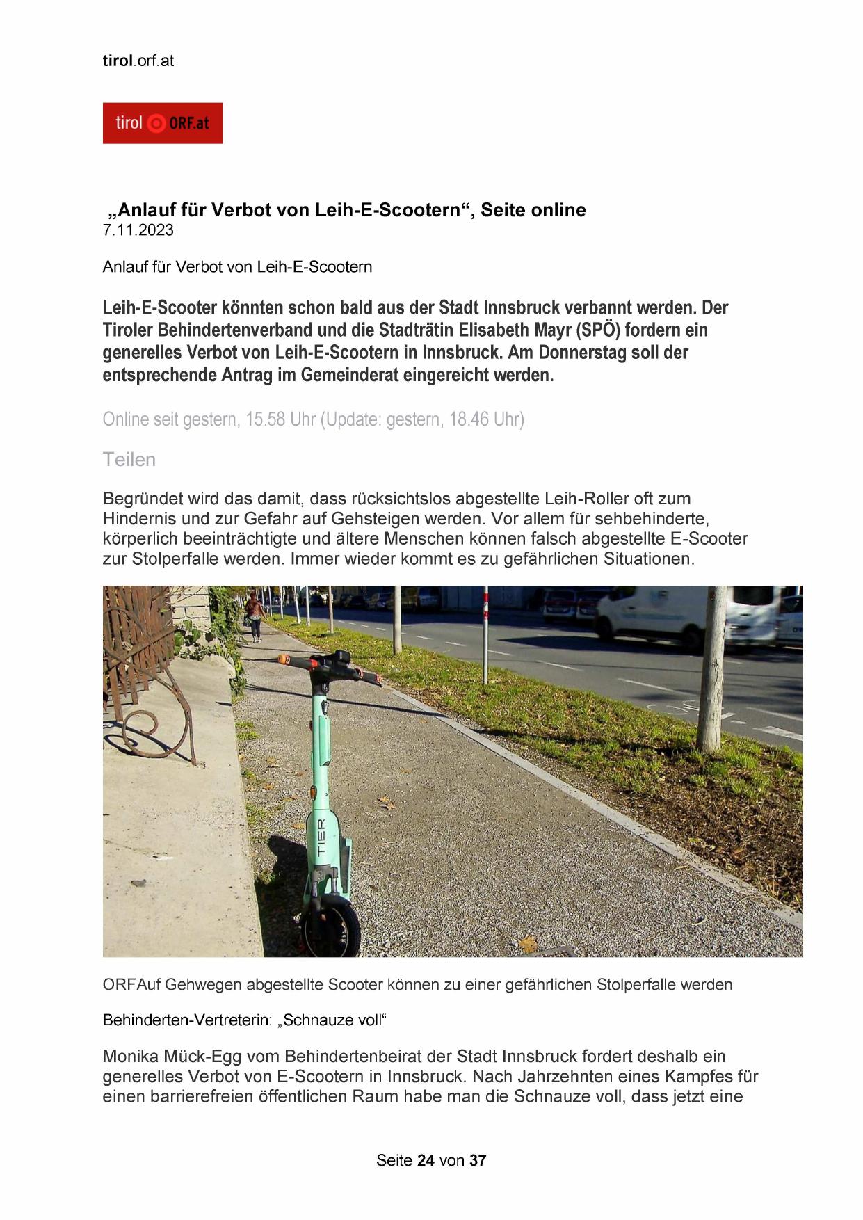 „Anlauf für Verbot von Leih-E-Scootern“, Seite online
