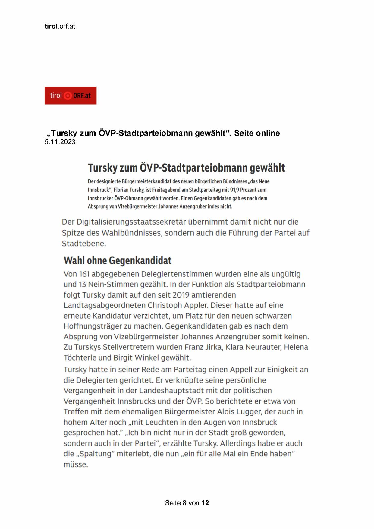 „Tursky zum ÖVP-Stadtparteiobmann gewählt“, Seite online