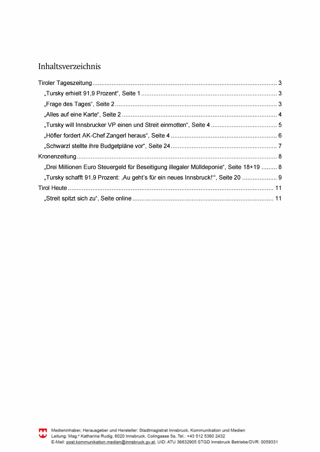 „Tursky schafft 91,9 Prozent: ‚Au geht’s für ein neues Innsbruck!““, Seite 20 .................... 9