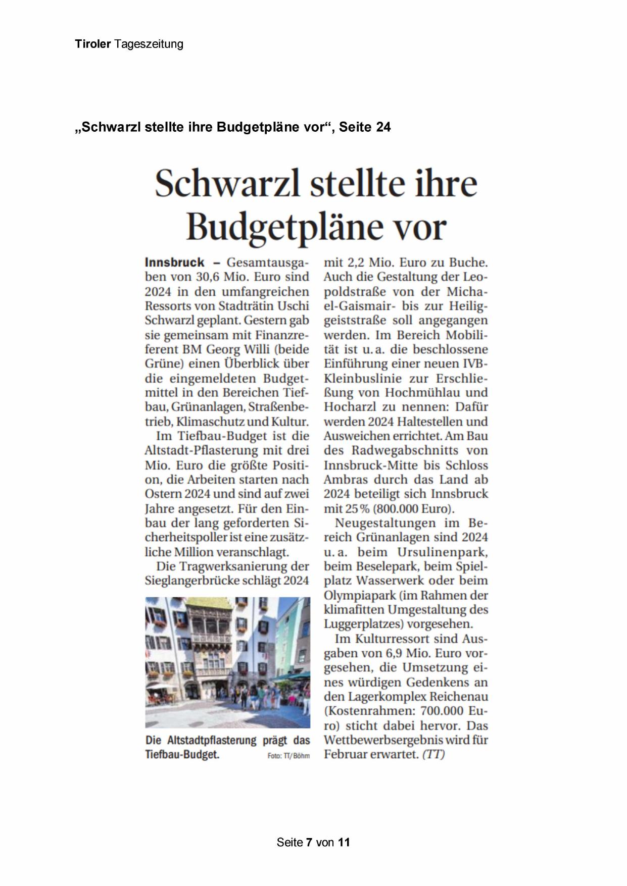 „Schwarzl stellte ihre Budgetpläne vor“, Seite 24