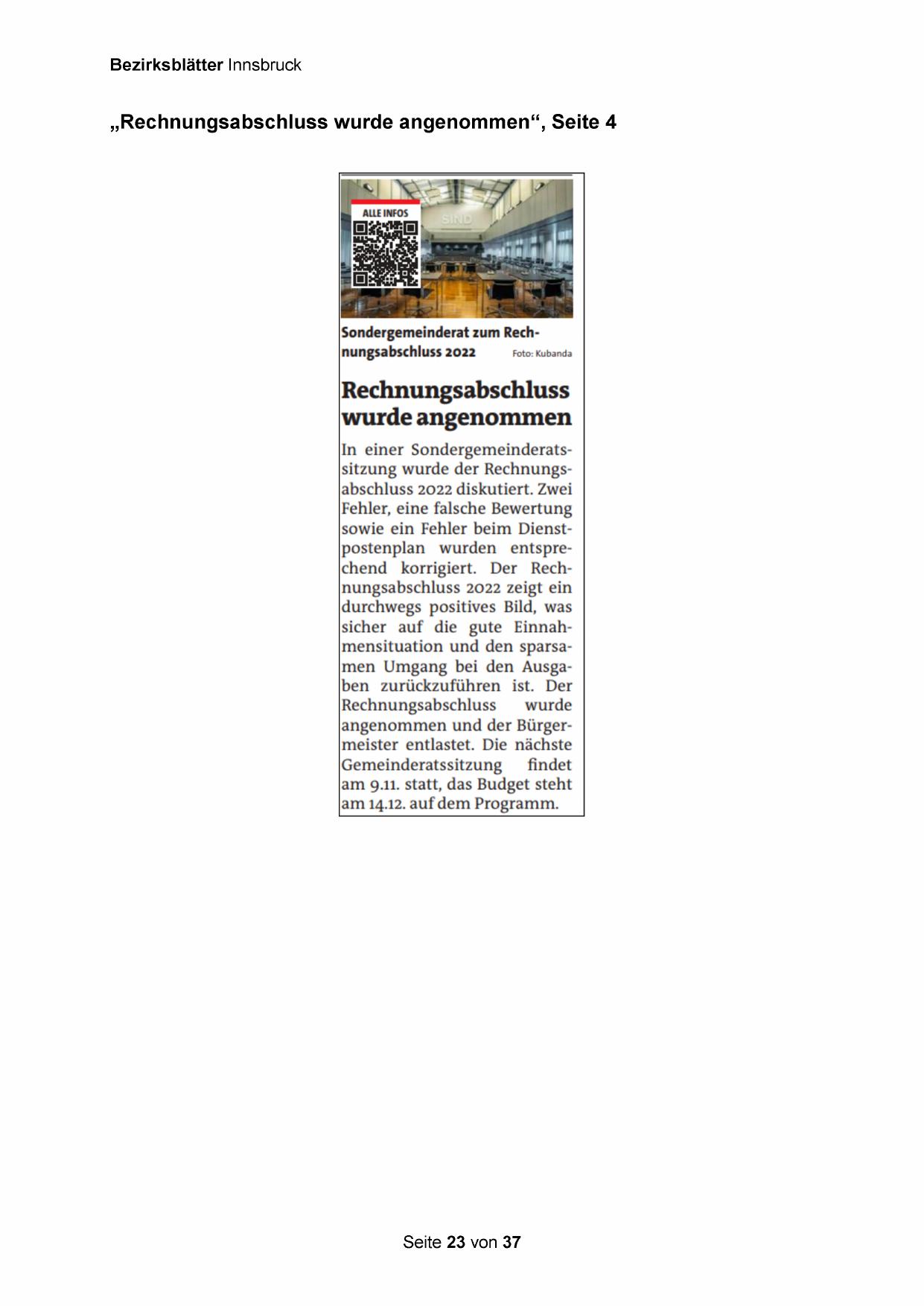 Sondergemeinderat zum Rechnungsabschluss 2022 Foto: Kubanda