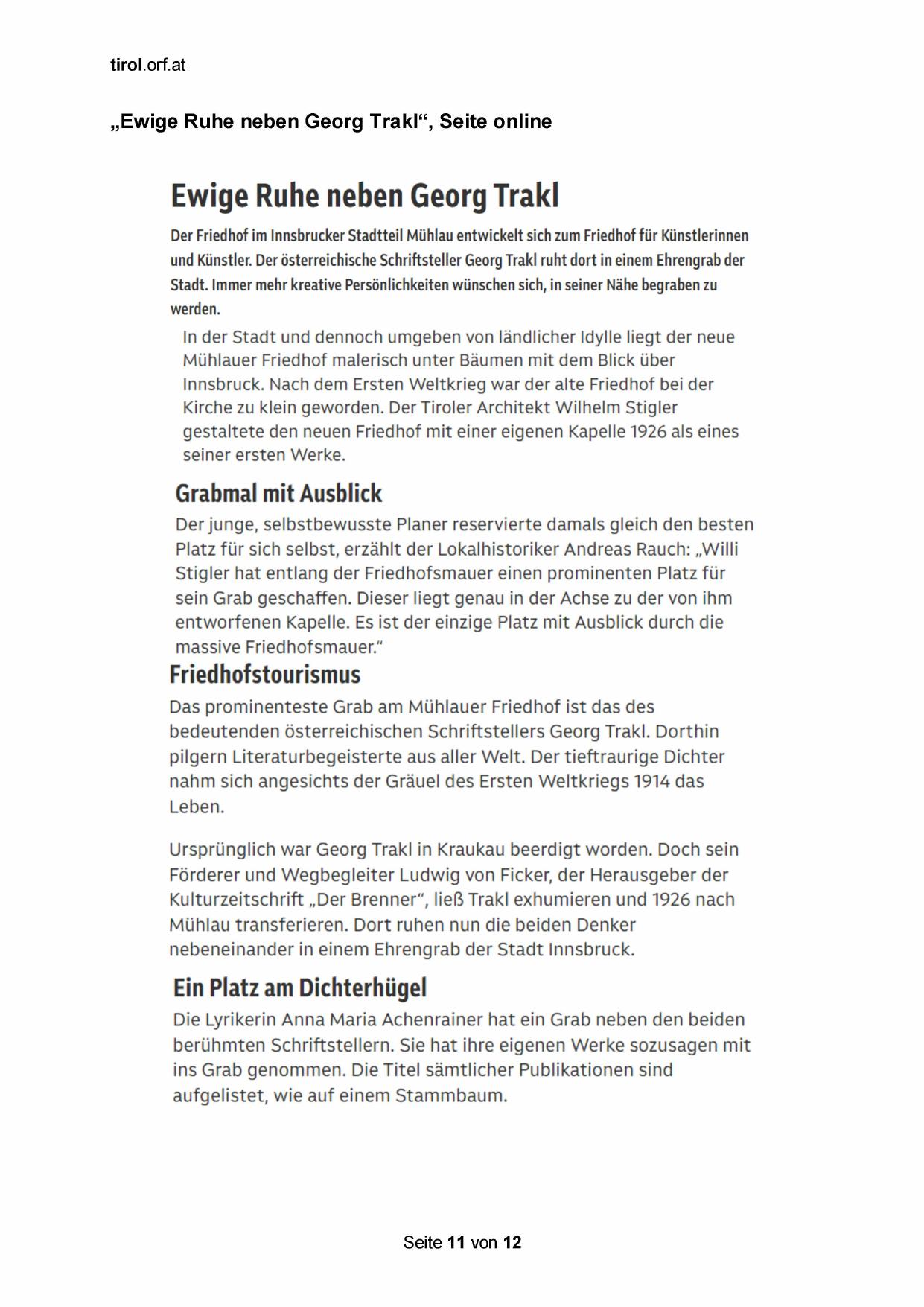 „Ewige Ruhe neben Georg Trakl“, Seite online