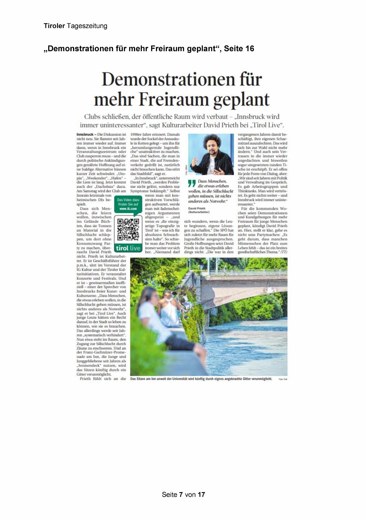 „Demonstrationen für mehr Freiraum geplant“, Seite 16