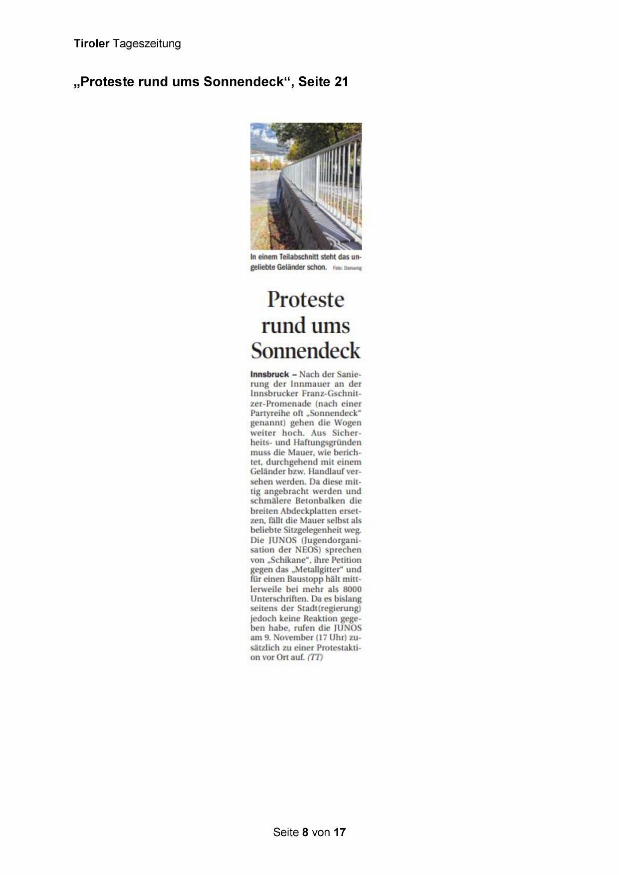 am 9. November (17 Uhr) zusätzlich zu einer Protestaktion vor Ort auf. (TT)