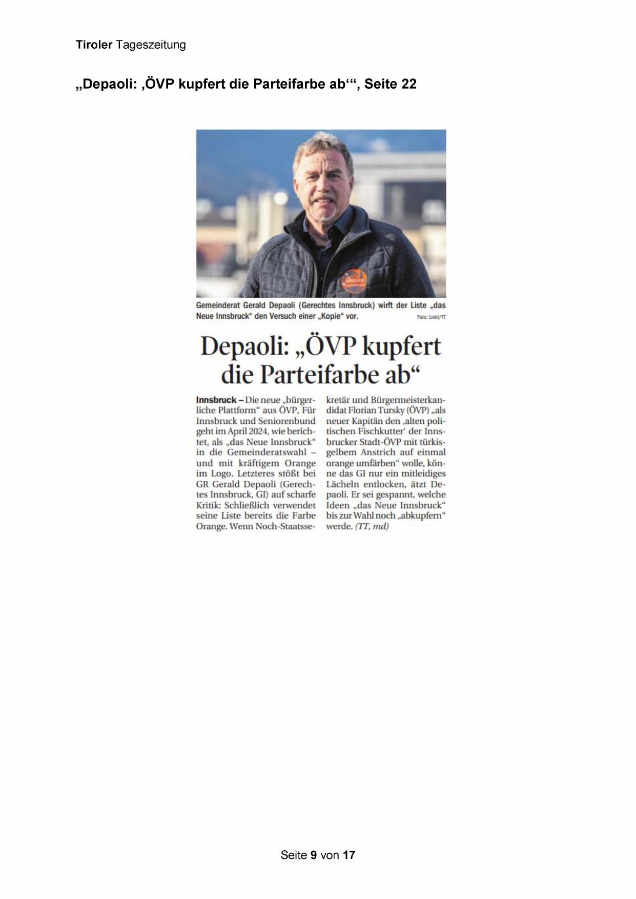 „Depaoli: ‚ÖVP kupfert die Parteifarbe ab‘“, Seite 22
