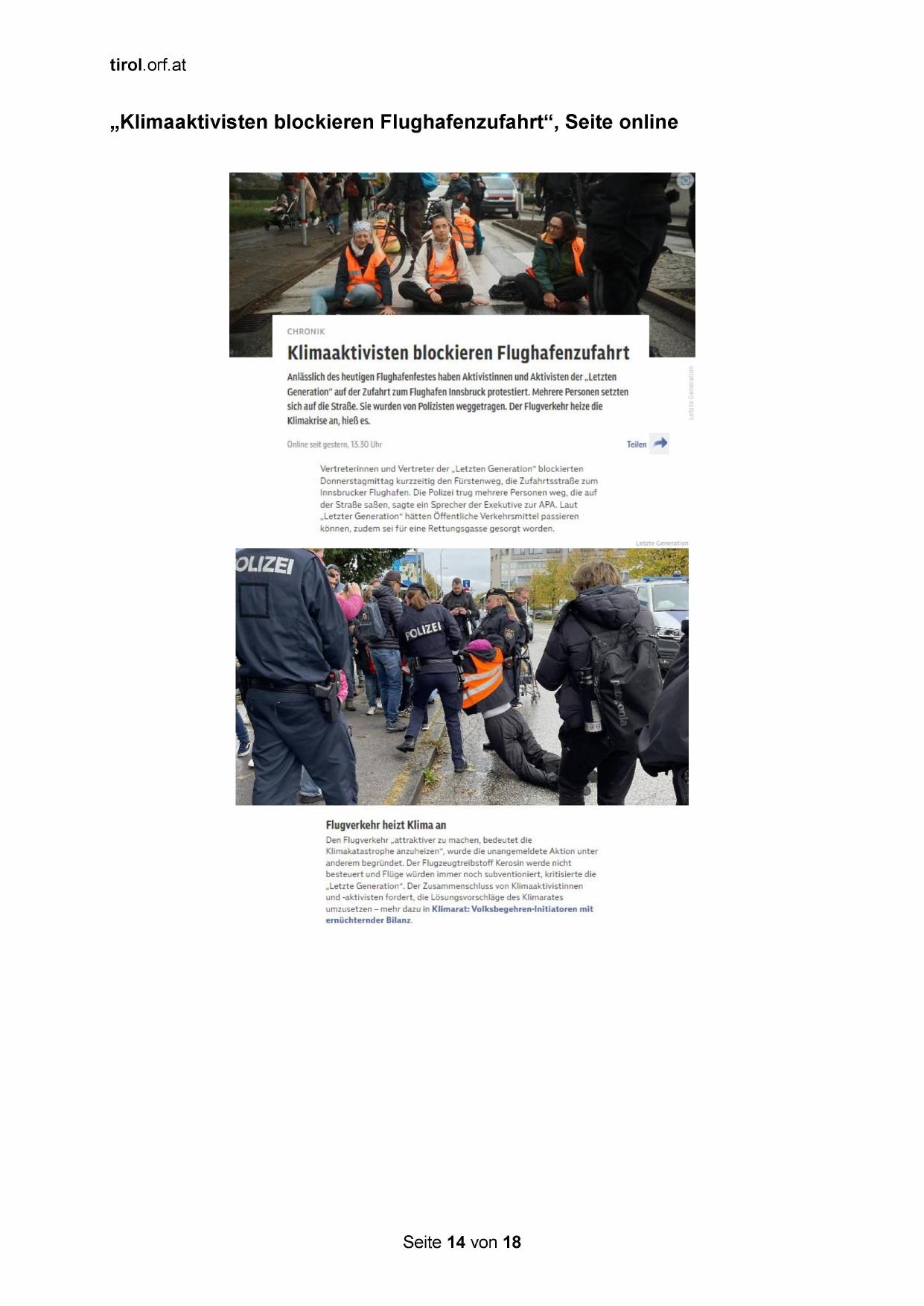 „Klimaaktivisten blockieren Flughafenzufahrt‘“, Seite online