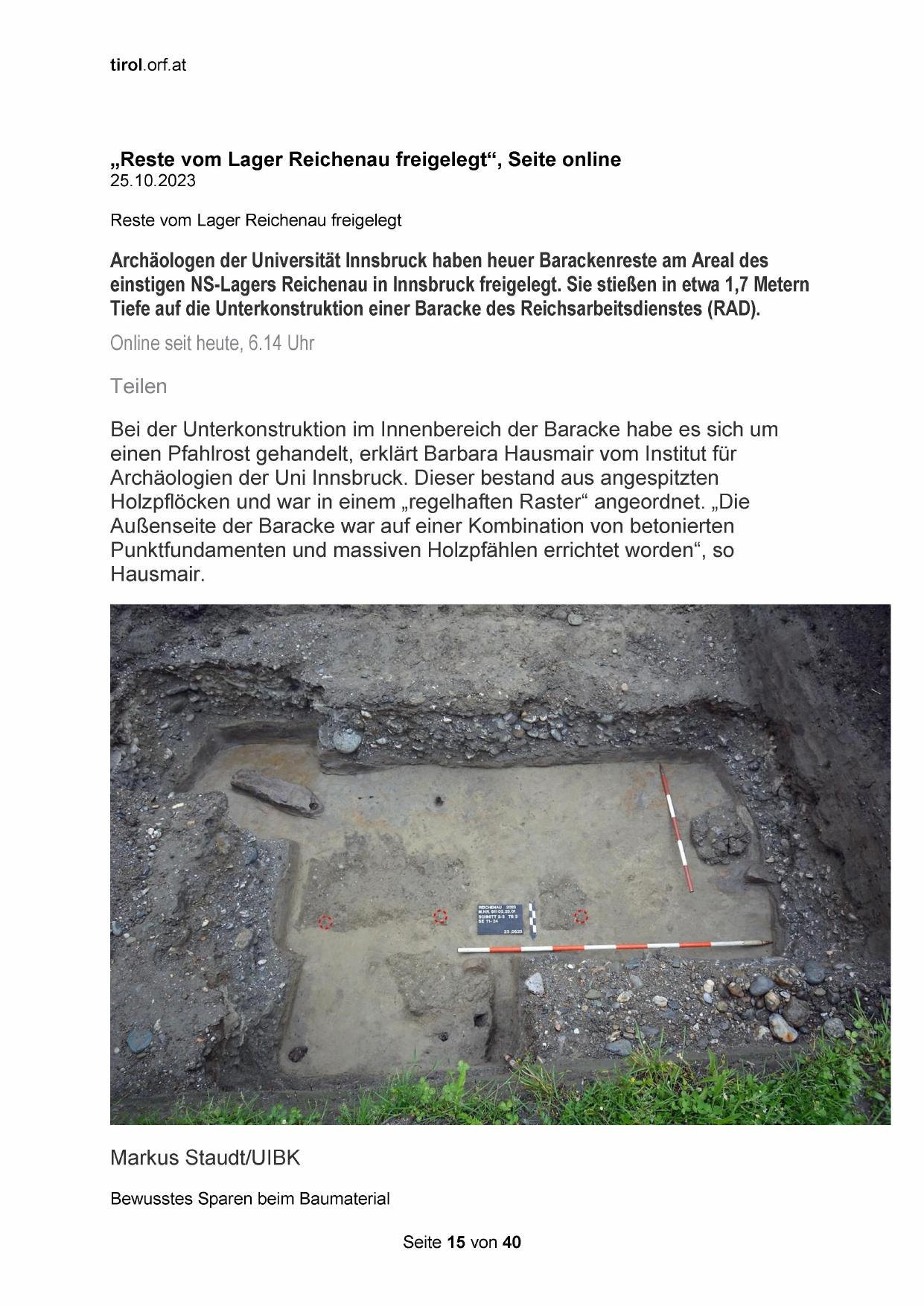 „Reste vom Lager Reichenau freigelegt‘“, Seite online