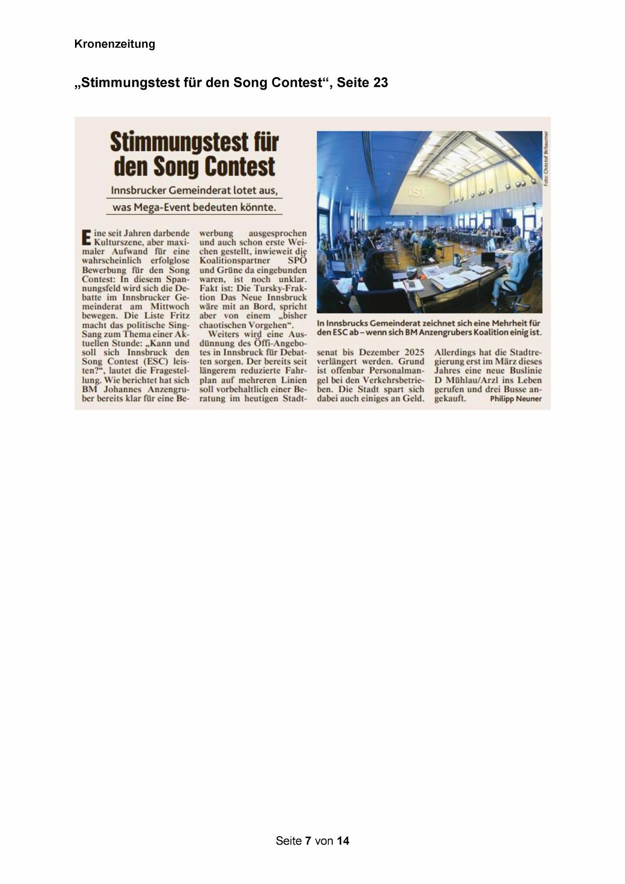 denESC ab - wenn sich BM Anzengrubers Koalition einig ist.