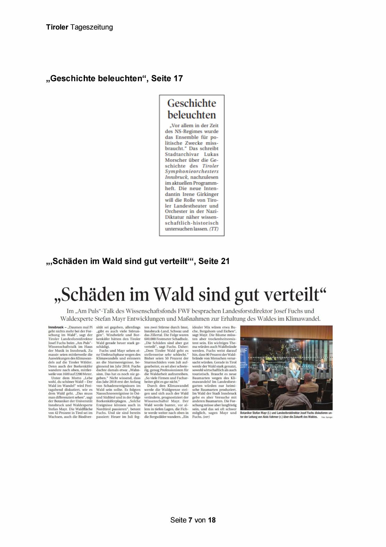 „gibt es auch viele Störungen“. Windwürfe und Borkenkäfer hätten den Tiroler