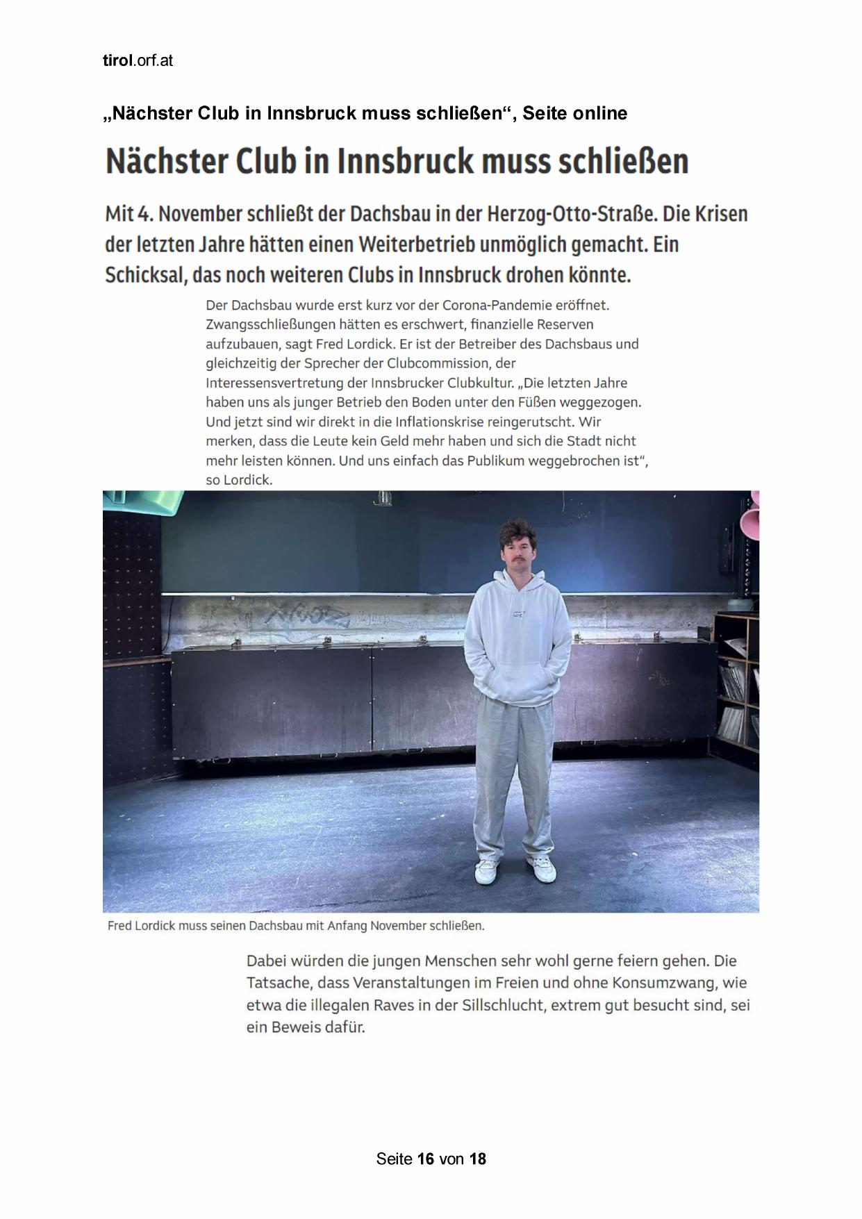 „Nächster Club in Innsbruck muss schließen‘“, Seite online