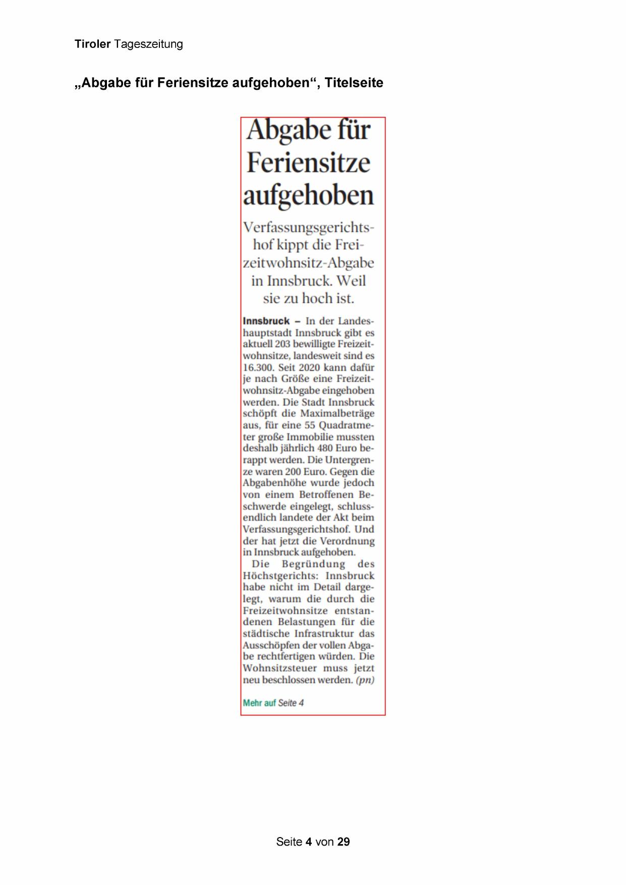 „Abgabe für Feriensitze aufgehoben“, Titelseite