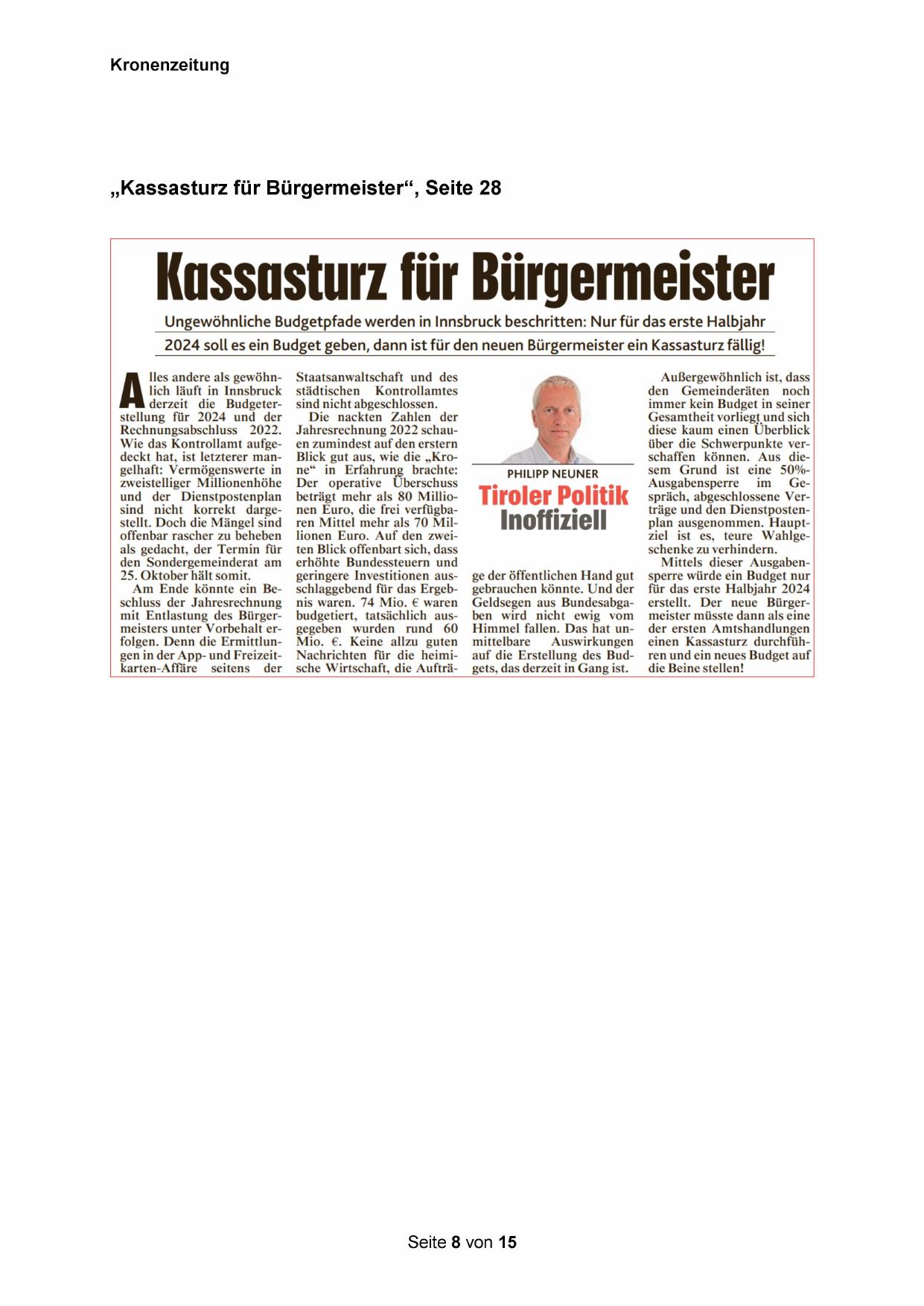 Ungewöhnliche Budgetpfade werden in Innsbruck beschritten: Nur für das erste Halbjahr