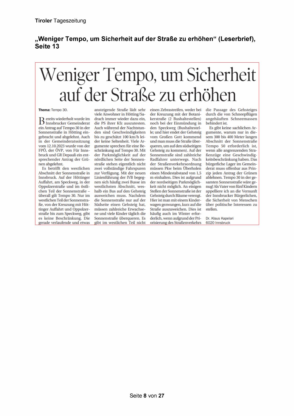 Sonnenstraße in Hötting ein- den sind Geschwindigkeiten le; und hier endet der Gehsteig gumente, warum nur in die-