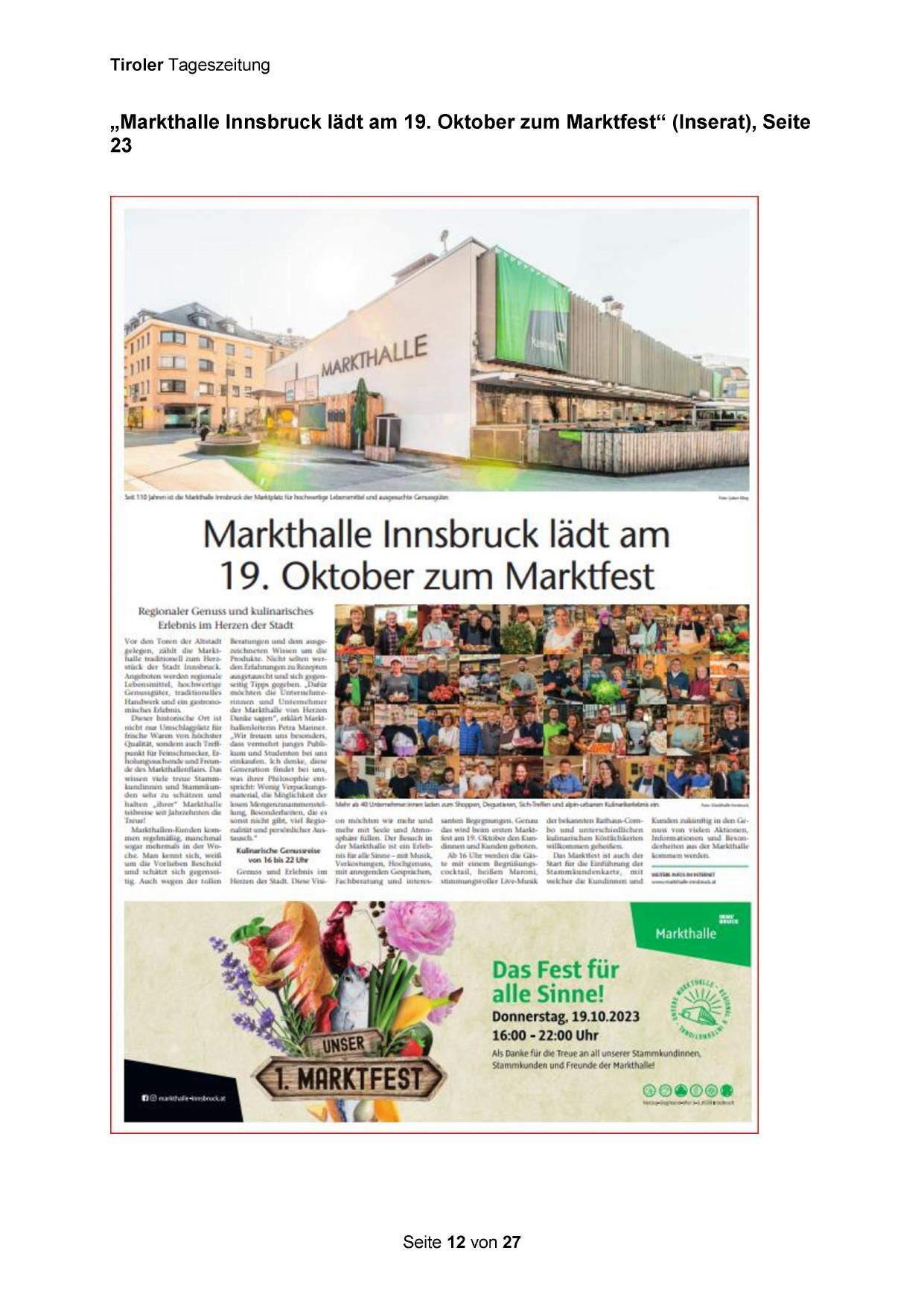 „Markthalle Innsbruck lädt am 19. Oktober zum Marktfest“ (Inserat), Seite
