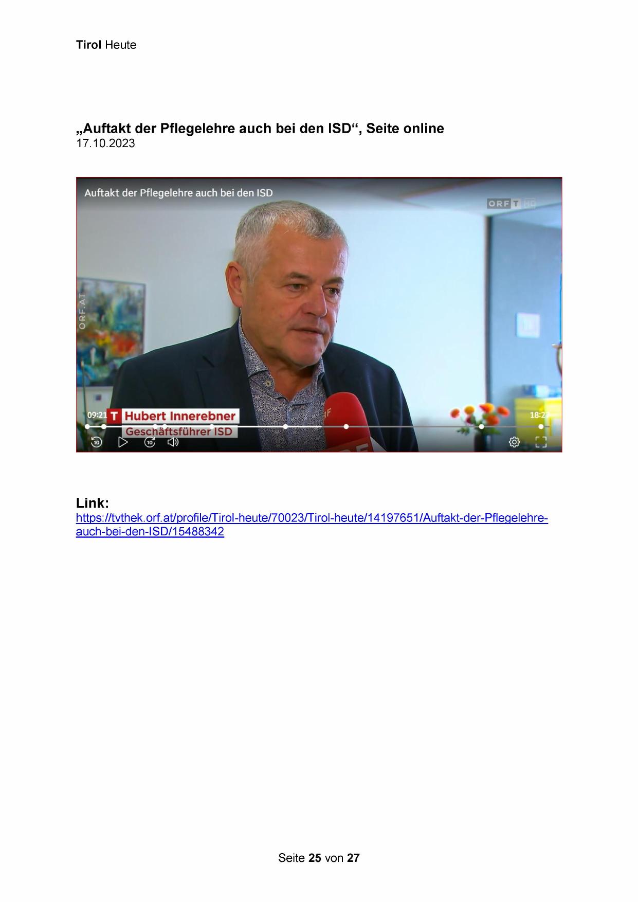 https://tvthek.orf. at/profile/Tirol-heute/70023/Tirol-heute/14 19765 1/Auftakt-der-Pflegelehreauch-bei-den-ISD/15488342