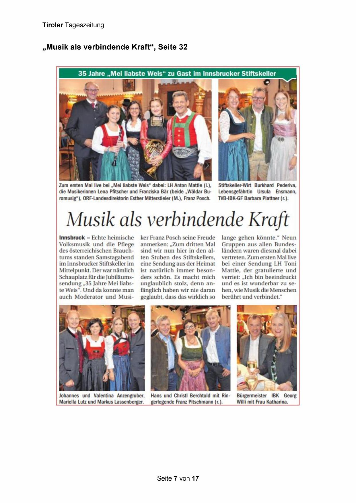 35 Jahre „Mei liabste Weis“ zu Gast im Innsbrucker Stiftskeller