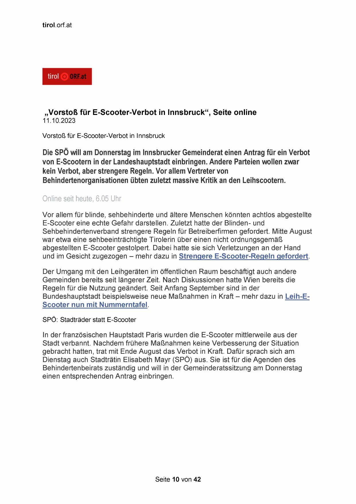 „Vorstoß für E-Scooter-Verbot in Innsbruck“, Seite online