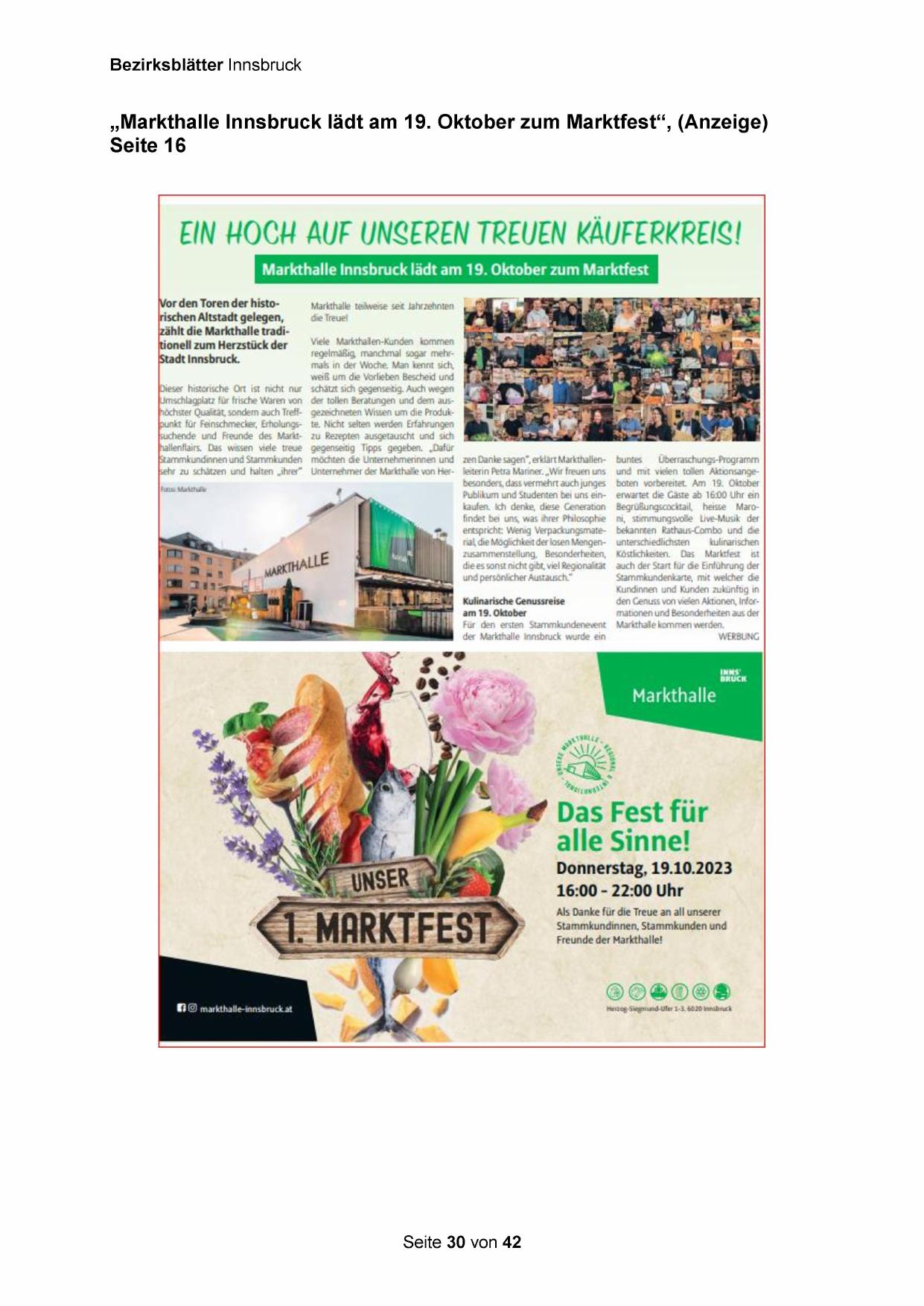 „Markthalle Innsbruck lädt am 19. Oktober zum Marktfest“, (Anzeige)