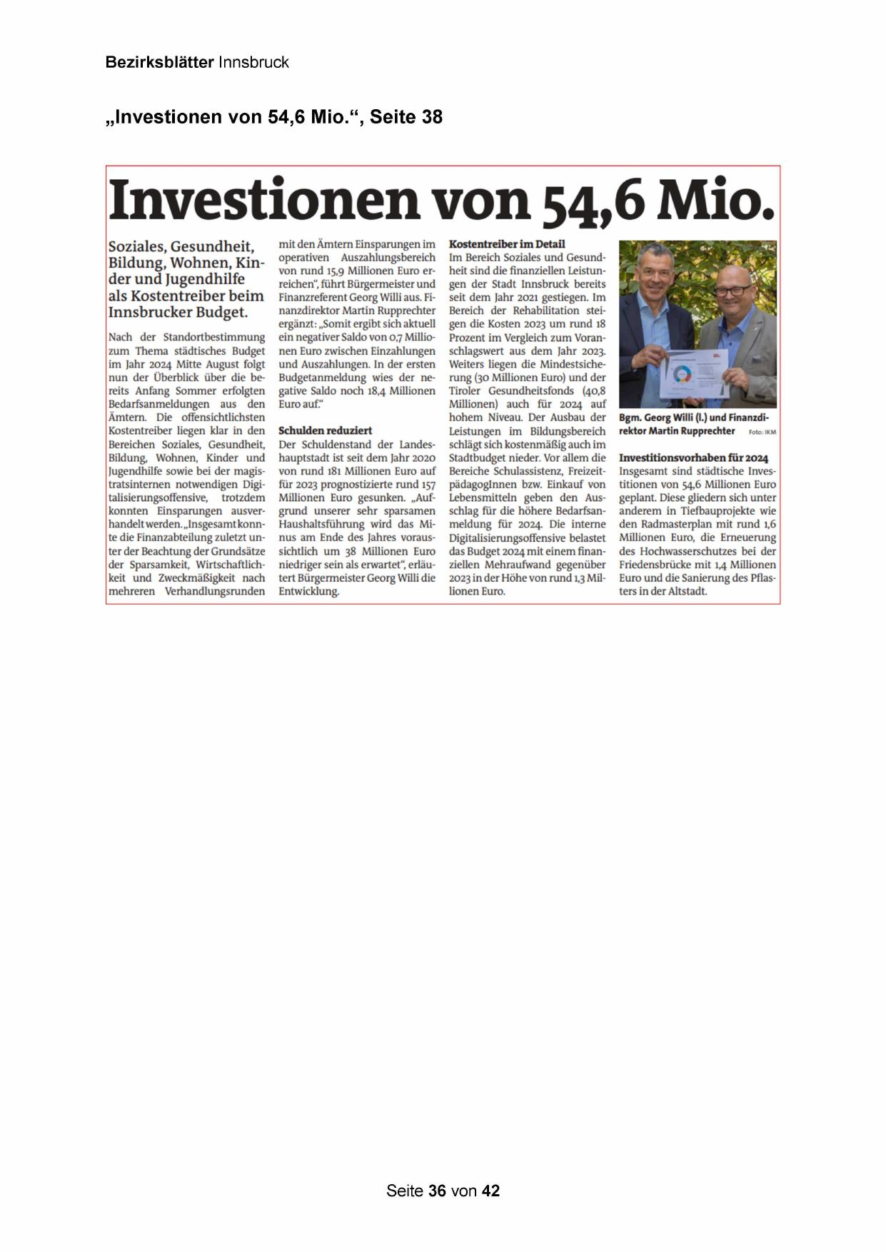 „Investionen von 54,6 Mio.“, Seite 38